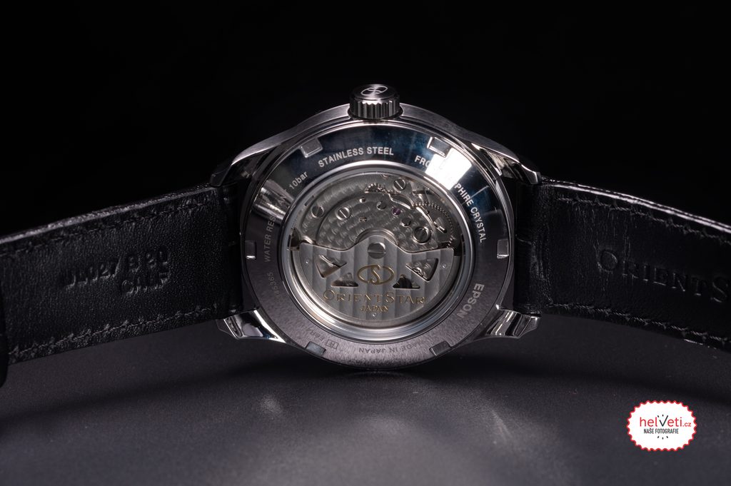 Puzdro hodiniek Orient RE-AT0007N00B je vyrobené z nehrdzavejúcej ocele a v jeho vnútri sa nachádza mechanický strojček Orient F6R4, ktorý je vybavený automatickým naťahovaním a rezervou chodu 50 hodín. Tento strojček je tiež vybavený zastavením sekundovej ručičky pri nastavení hodiniek (hacking) a zaujímavou komplikáciou je ukazovateľ rezervy náťahu na 12. hodine. Mnohých určite poteší zotrvačník na 9. hodine, tzv. "otvorené srdce". Strojček pracujúci s frekvenciou 21 600 polfrekvencií za hodinu je možné pozorovať vďaka priehľadnému ciferníku.