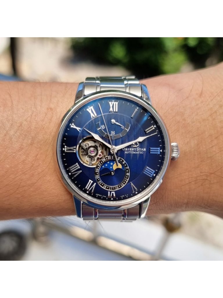 Najnovšia verzia hodiniek Orient Star Moon Phase zostáva verná pôvodnému dizajnu z roku 2017, keď značka uviedla na trh svoje prvé mechanické hodinky s funkciou mesačnej fázy ako súčasť klasickej kolekcie, ktorá sa rýchlo stala vlajkovou loďou značky. Tento nový, starostlivo prepracovaný dizajn evokuje tečúcu vodu a vyznačuje sa vynikajúcou kvalitou a dôkladným remeselným spracovaním, ktoré sú synonymom značky ORIENT STAR. Vďaka svojmu výraznému vzhľadu sú skvelou voľbou pre elegantné pánske hodinky.
