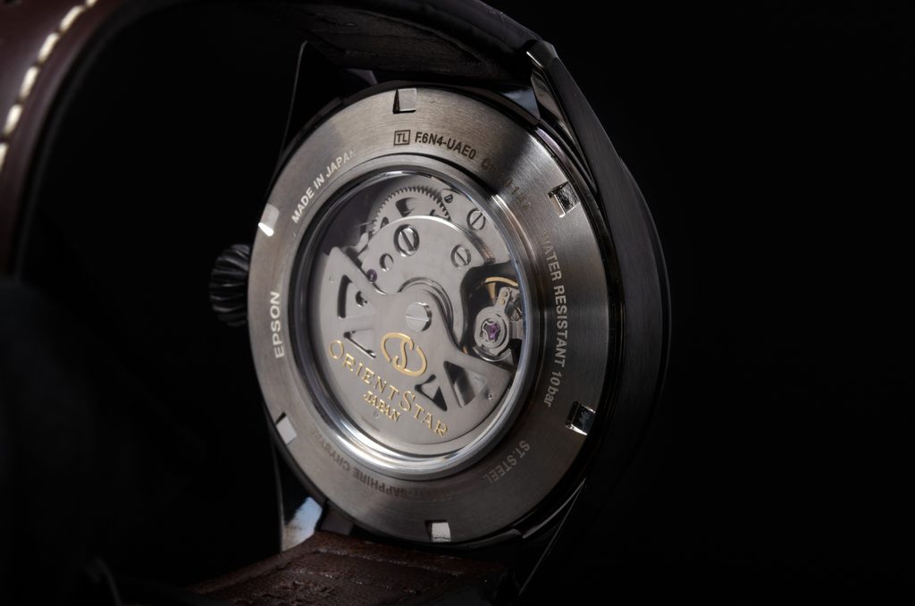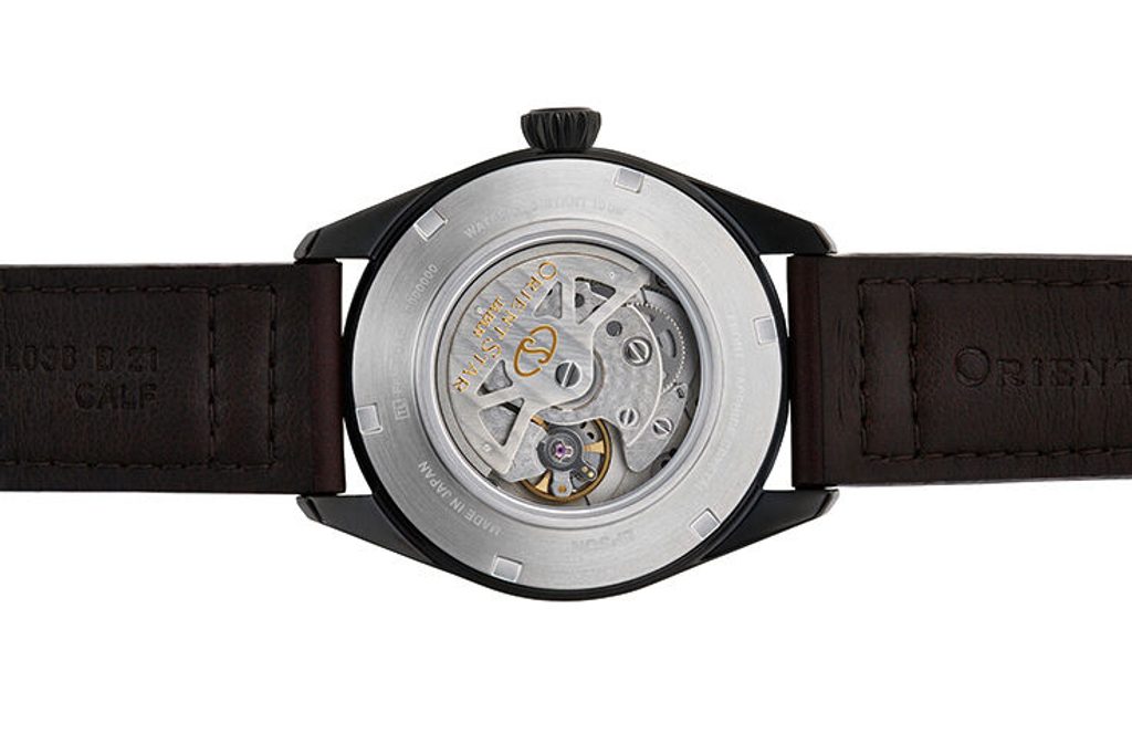 Puzdro hodiniek Orient RE-AU0201E je vyrobené z ocele s čiernou PVD úpravou. Chráni ho vlastný mechanický strojček Orient so samonáťahom, kaliber Orient F6N43 s rezervou chodu 50 hodín, ktorý je vybavený funkciou zastavenia sekundovej ručičky pri nastavovaní času, tzv. hackingom a možnosťou natáčania korunky. Zaujímavou komplikáciou je ukazovateľ rezervy náťahu na 12. hodine. Strojček pracujúci s frekvenciou 21 600 polfrekvencií za hodinu je možné pozorovať vďaka priehľadnému ciferníku.