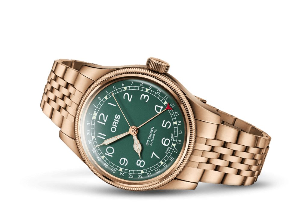 Švajčiarske hodinky Oris Big Crown Bronze Pointer Date 01 754 7741 3167-07 8 20 01 zaujmú atraktívnym retro pilotným štýlom a vynikajúcim spracovaním. Tento model výborne poslúži nielen v oblakoch, ale aj pri každodennom nosení. Zaujímavosťou tohto modelu je celobronzová povrchová úprava, ktorá počas nosenia prináša patinovanie, vďaka čomu je každý kus jedinečný.