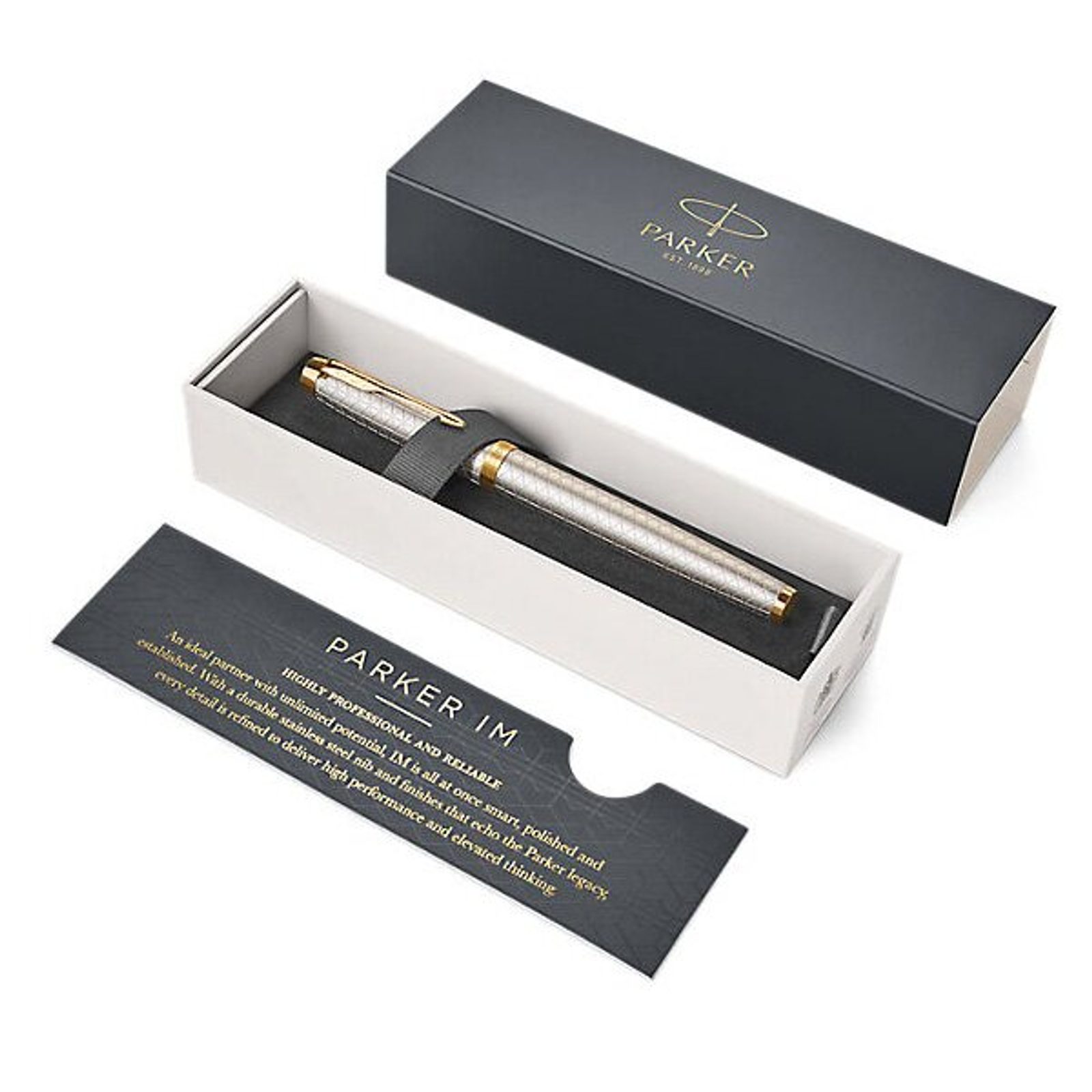 Séria pier IM sa môže pochváliť eloxovaným hliníkovým telom a uzáverom s ozdobným laserovým gravírovaním a pieskovaným povrchom. Nadčasový a jedinečný vzhľad pera dotvára kombinácia pozlátených doplnkov a hrotu z nehrdzavejúcej ocele.
