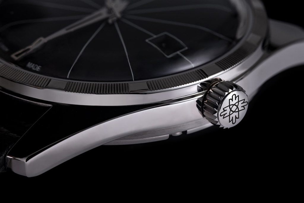Nadčasovo elegantný dizajn ciferníka a prepracované puzdro, ktoré sa vyznačuje ozdobným frézovaním, nevyjdú z módy ani po desiatkach rokov. Korunku z ušľachtilej ocele zdobí piktogram novomestských oblúkov, ktorý je symbolom prestíže a luxusu náramkových hodiniek s kalibrom vlastnej výroby PRIM 98.00 - samonáťahom. Špeciálne brúsené cylindrické zafírové sklíčko má tvar pôvodného skla. Vodotesnosť hodiniek je 5 ATM.