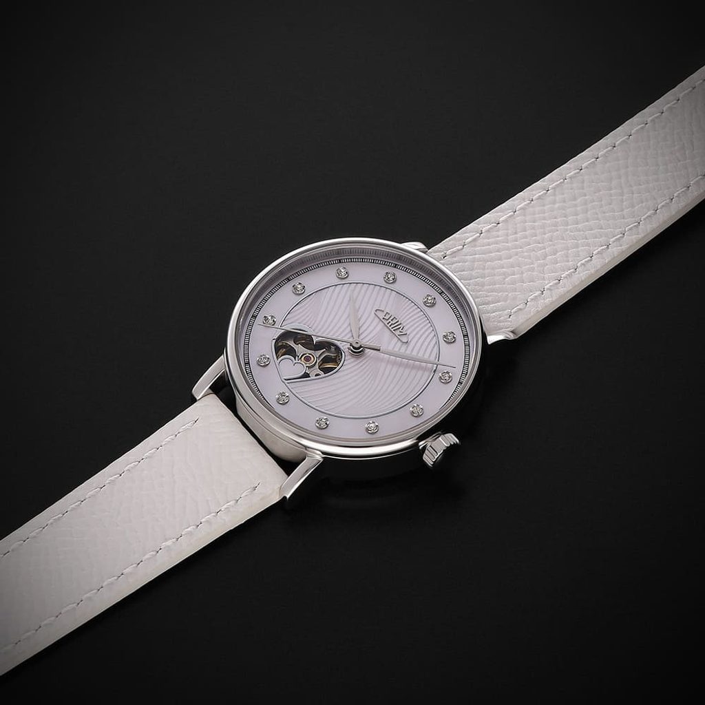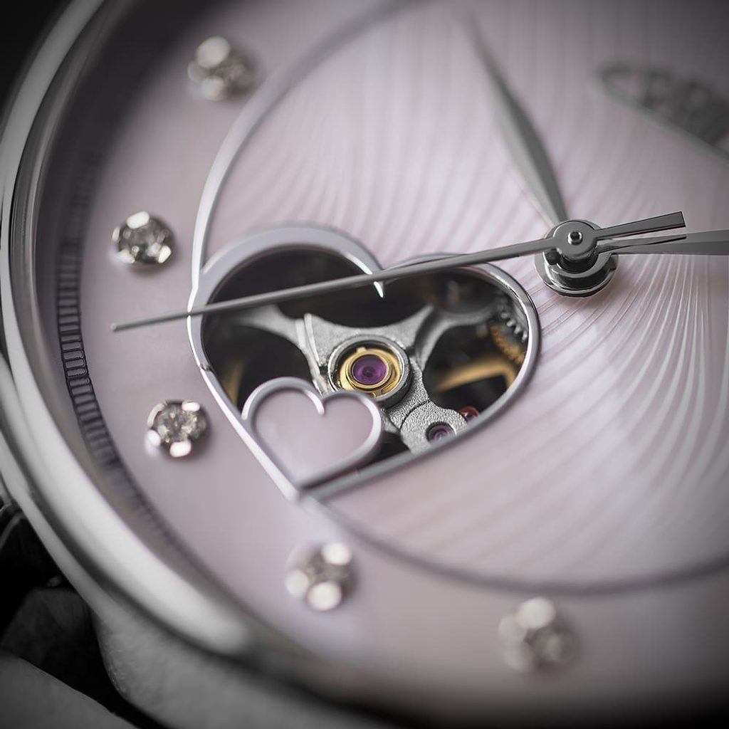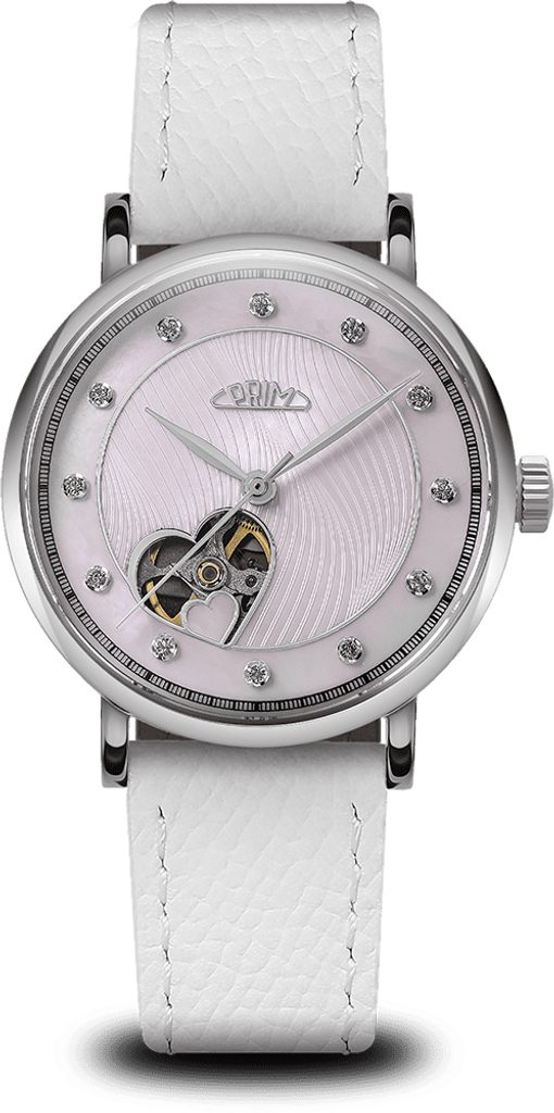 Hodinky PRIM Lady Love Elegant - A W02P.13252.A patria do série Automatic a vďaka svojmu elegantnému dizajnu sú vhodné na špeciálne príležitosti v spoločnosti, ale aj na každodenné nosenie. Vďaka otvorenému srdiečku poskytuje model priehľadný ciferník na zotrvačníku.