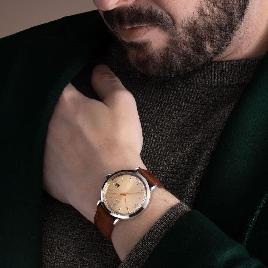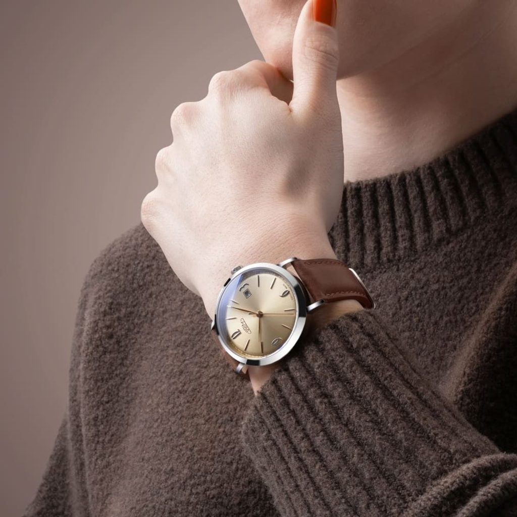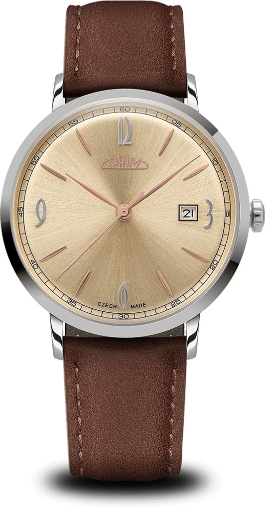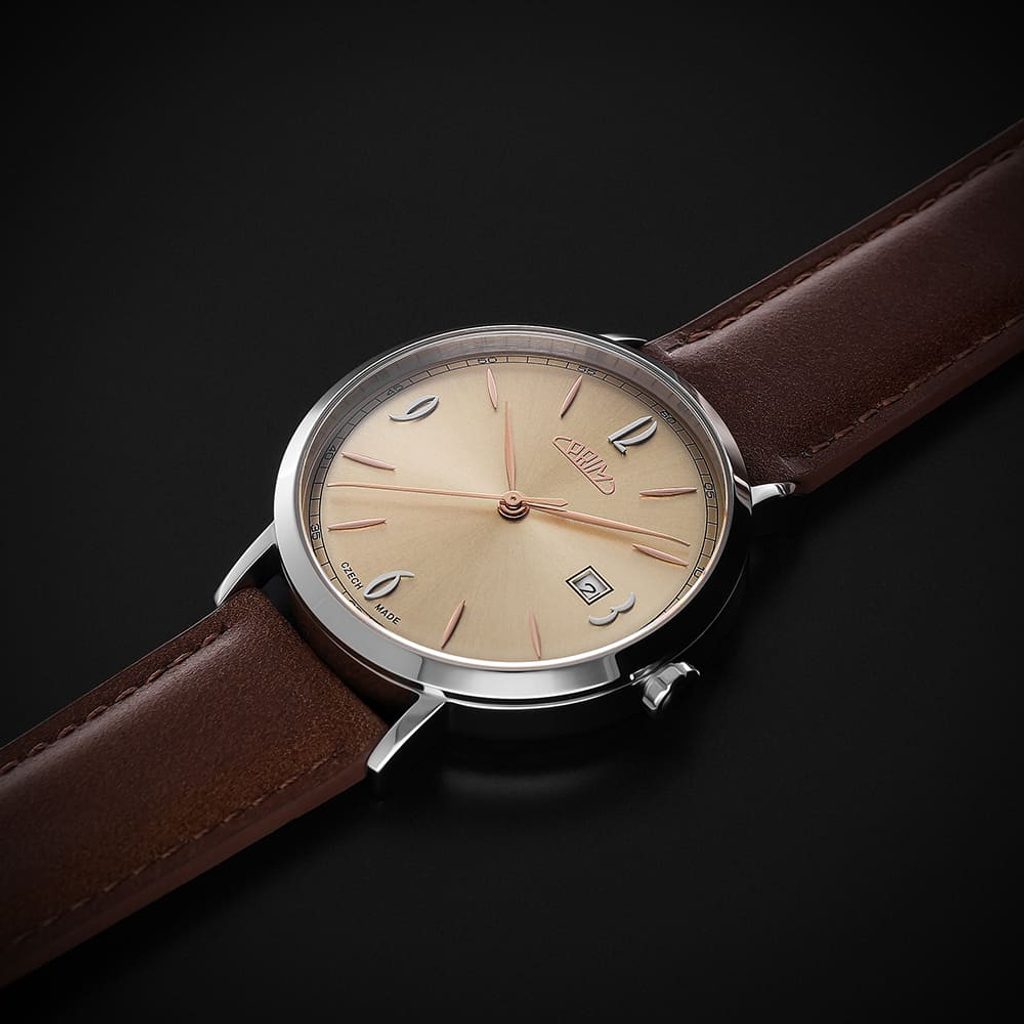 Atraktívna kombinácia farieb puzdra a ciferníka vo viacerých variantoch. Dátum vo farbe ciferníka spolu s jemnými indexmi doplnenými číslicami 3, 6, 9 a 12 podčiarkujú minimalistické poňatie týchto hodiniek a vzdávajú hold českému hodinárskemu svetu. Dizajn vytvoril mladý začínajúci dizajnér, ktorého úlohou bolo čerpať inšpiráciu zo 60. rokov minulého storočia.