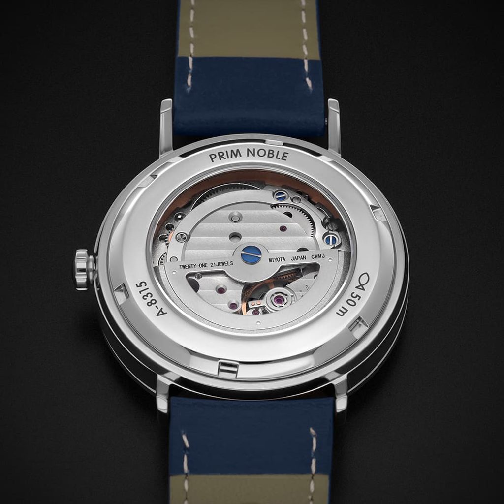 Vo vnútri hodiniek pracuje kvalitný a spoľahlivý japonský strojček Miyota 8315 s automatickým náťahom. Pracuje s frekvenciou 21 600 polfrekvencií za hodinu, má 21 drahokamov a rezervu chodu 42 hodín. Model má aj praktickú funkciu dátumu na pozícii 3 hodín.