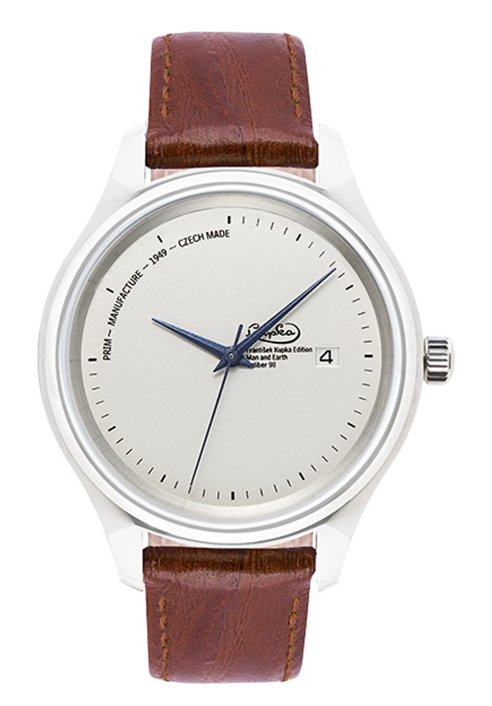 Originálny ciferník sa vymyká hodinárskym konvenciám. Jeho jemné línie harmonicky dopĺňa Kupkov podpis, asymetricky umiestnený na spojnici osi hodinových ručičiek a okienka dátumu. Celkovú grafickú vyváženosť dotvárajú ručičky s modrým žilkovaním a neobvyklé umiestnenie loga PRIM Automatic na obvode druhého kvadrantu ciferníka.