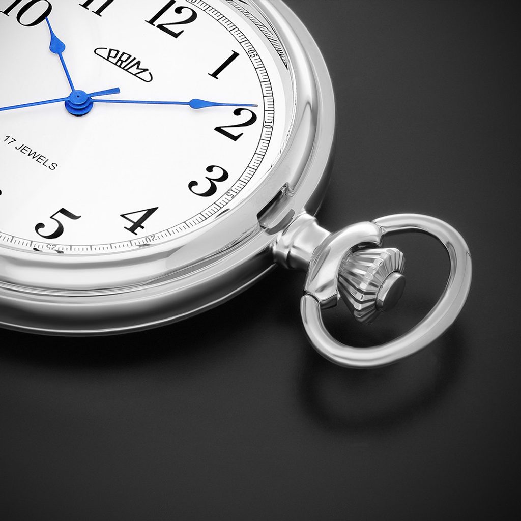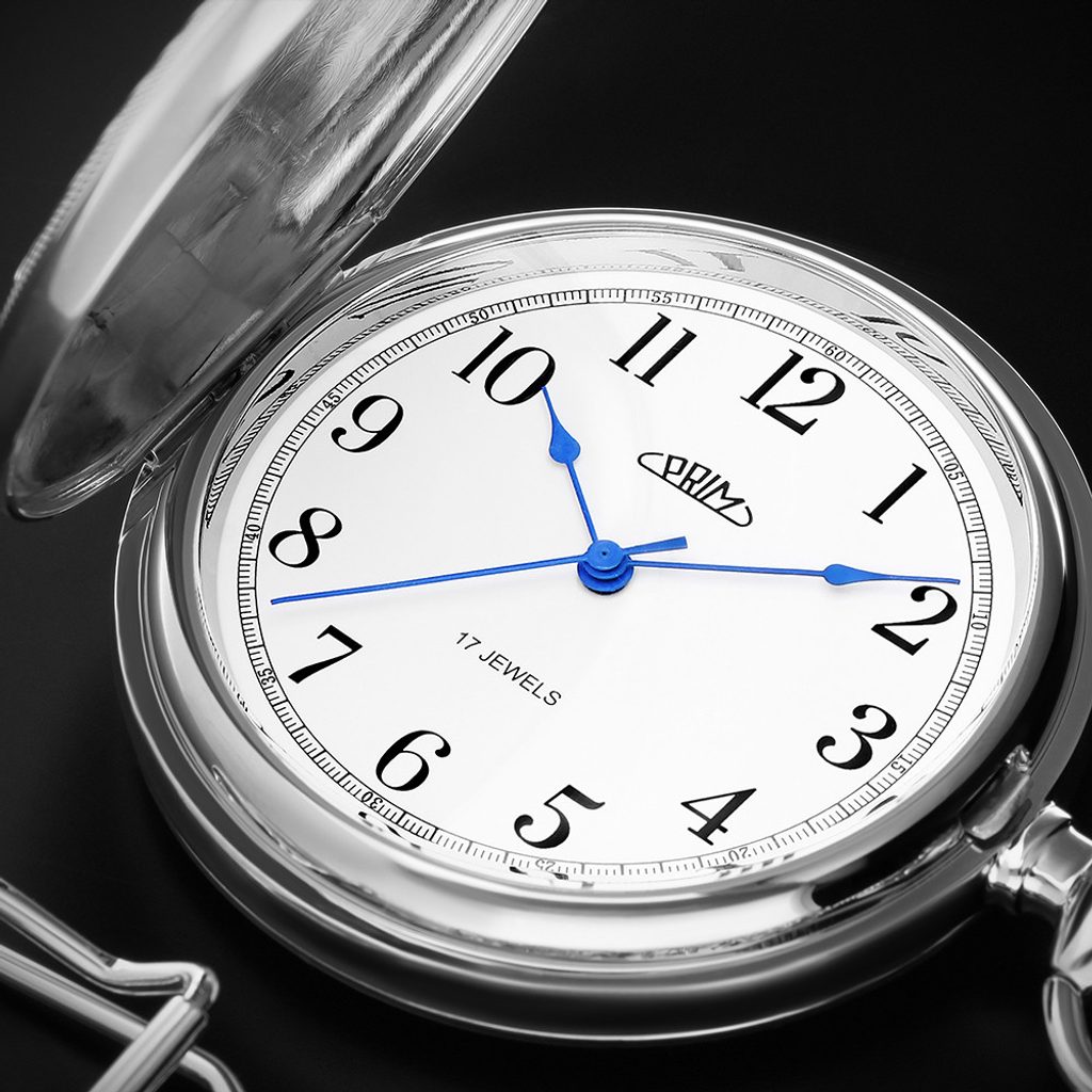 Hodinky sa dodávajú v krabičke PRIM spolu s retiazkou z nehrdzavejúcej ocele na pripevnenie na vrecko obleku alebo vesty. Odporúčame vykonávať údržbu vreckových hodiniek aspoň 1-krát za 2 roky a nosiť ich vo vreckovom puzdre!