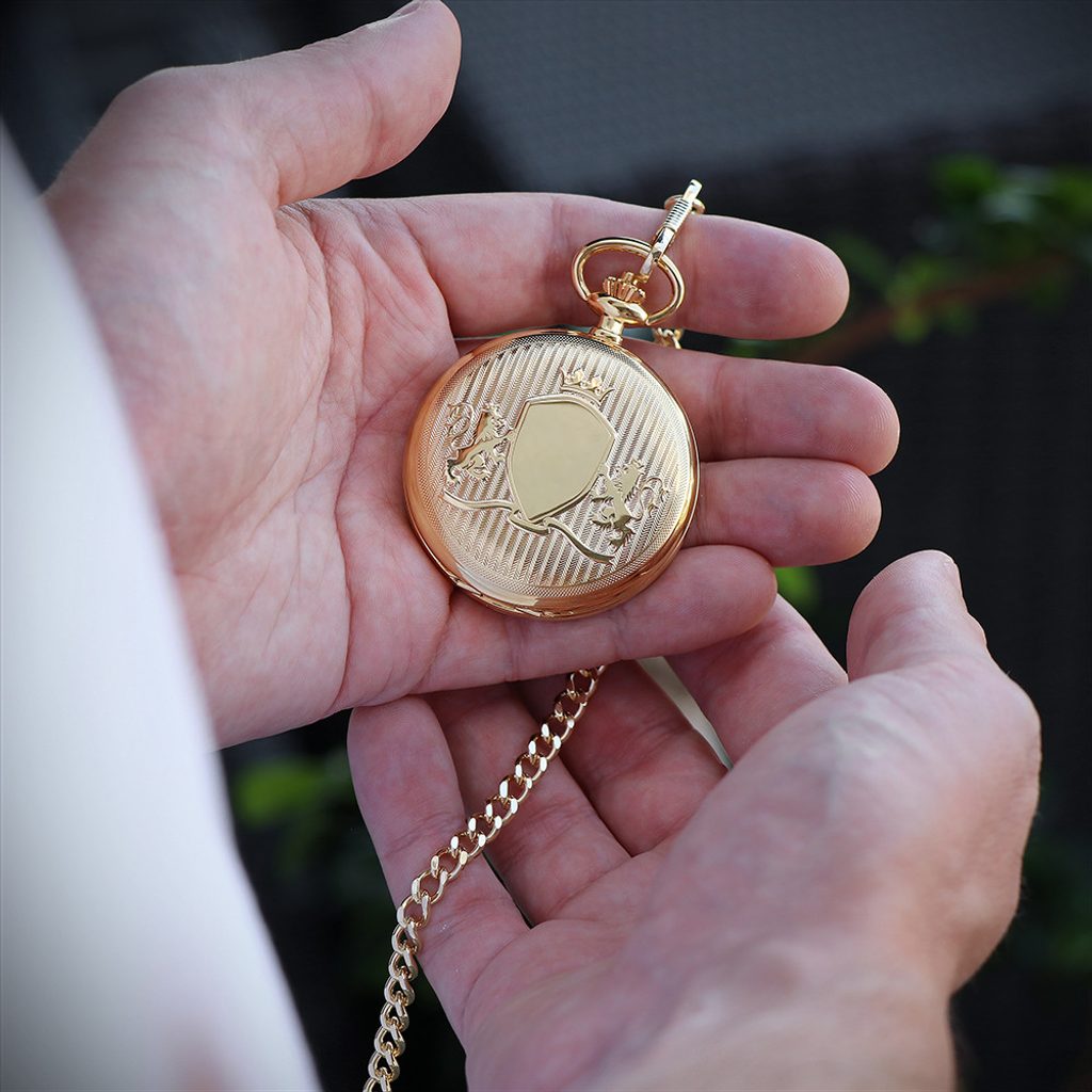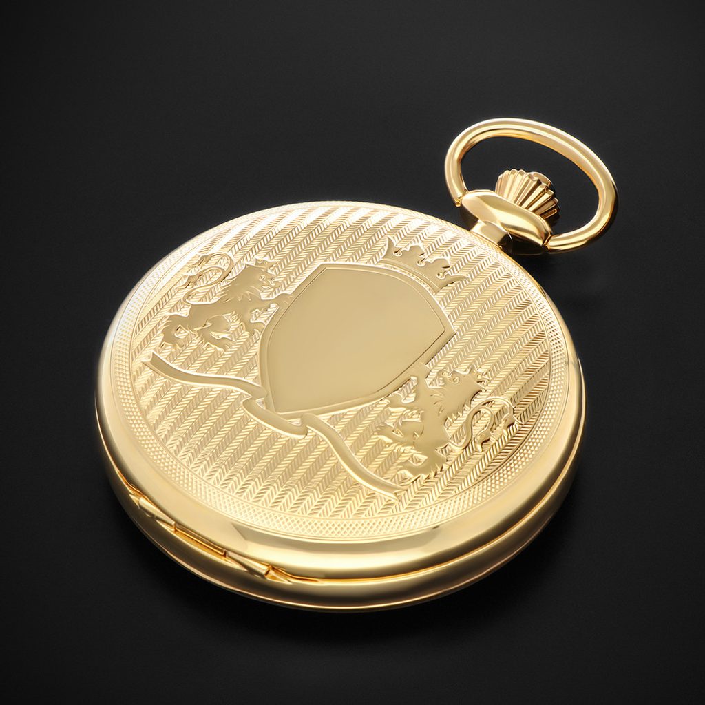Klasické mechanické vreckové hodinky PRIM Pocket Symbol W04P.13223.D s ručným naťahovaním s arabskými číslicami. Novo navrhnuté puzdro hodiniek zdobí symbol českého štátneho znaku, t. j. dvojchvostý lev sprevádzaný erbom, ktorý sa dokonale hodí k individualizácii monogramu. Hodinky sa dodávajú s retiazkou z nehrdzavejúcej ocele.