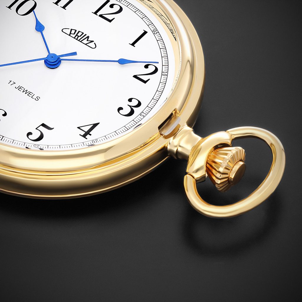 Hodinky sa dodávajú v krabičke PRIM spolu s retiazkou z nehrdzavejúcej ocele na pripevnenie na vrecko obleku alebo vesty. Odporúčame vykonávať údržbu vreckových hodiniek aspoň 1-krát za 2 roky a nosiť ich vo vreckovom puzdre!