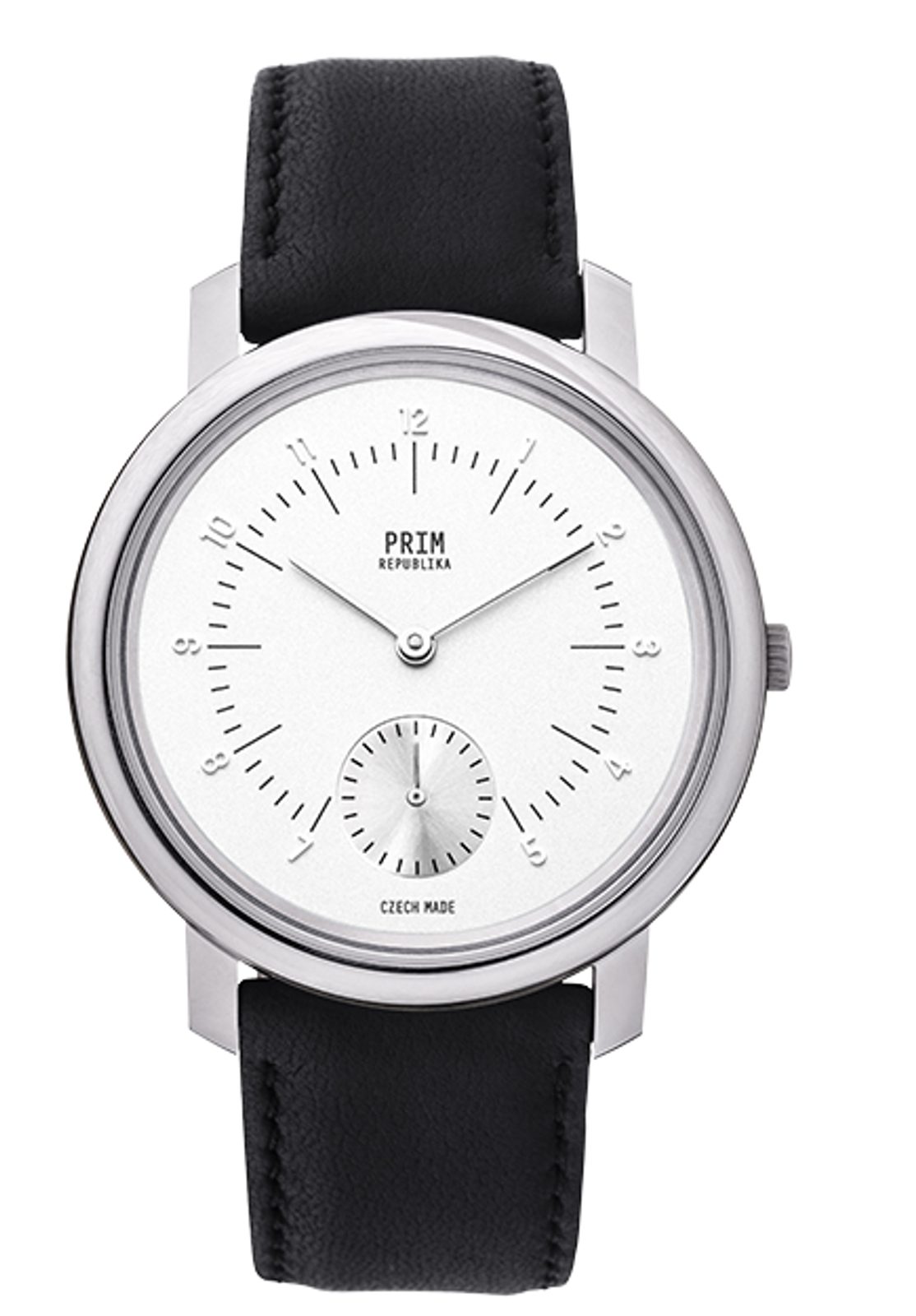 Tomu zodpovedá aj materiál puzdra, ktorým je nehrdzavejúca oceľ. Hodinky PRIM Republika si zachovávajú minimalistické poňatie ciferníka, ktorý opäť navrhol produktový dizajnér Jiří Karásek, ale indexy už nie sú len naznačené, ale označené číslicami. Ciferník sa vyznačuje vyváženým a nadčasovým dizajnom. Typografia odkazuje na vznik českej štátnosti, indexy sú umiestnené v strede ciferníka, aby vynikol elegantný tvar puzdra. Na druhej strane číslice sú ponechané voľne v priestore.
