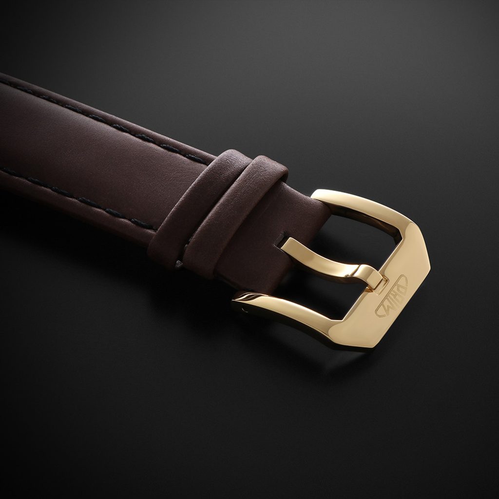 Klasický a čistý vzhľad podčiarkuje tradičný retro ciferník s indexmi a číslicami značky PRIM. Na pozícii 3 hodín sa nachádza okienko s dátumovkou v netradičnom minimalistickom okrúhlom tvare, ktoré dopĺňa sekundovú ručičku a vytvára harmóniu v celkovom dizajne hodiniek.