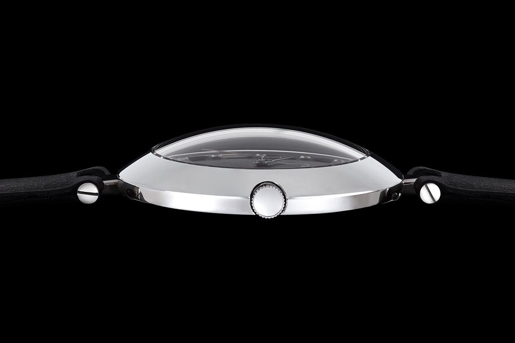 Zafírové vypuklé sklo umožňuje vyniknúť českým granátom na ciferníku, ktorý navrhol Jiří Karásek zo Studia Marvil. Kamene na mieste indexov vystupujú na povrch v podobe pripomínajúcej sopečné útvary.
