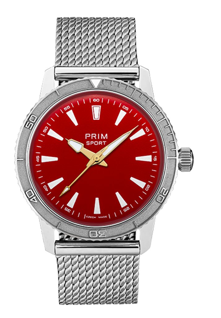 Nový rad hodiniek PRIM Sport 38 A vyniká detailným spracovaním a nápaditými dizajnovými prvkami. Červený ciferník je vždy dokonale čitateľný vďaka výrazným indexom, ktoré rovnako ako ručičky svietia modrou luminiscenciou. Pozlátené ručičky dodávajú modelu luxusný vzhľad a vytvárajú kontrast s moderným športovým štýlom.