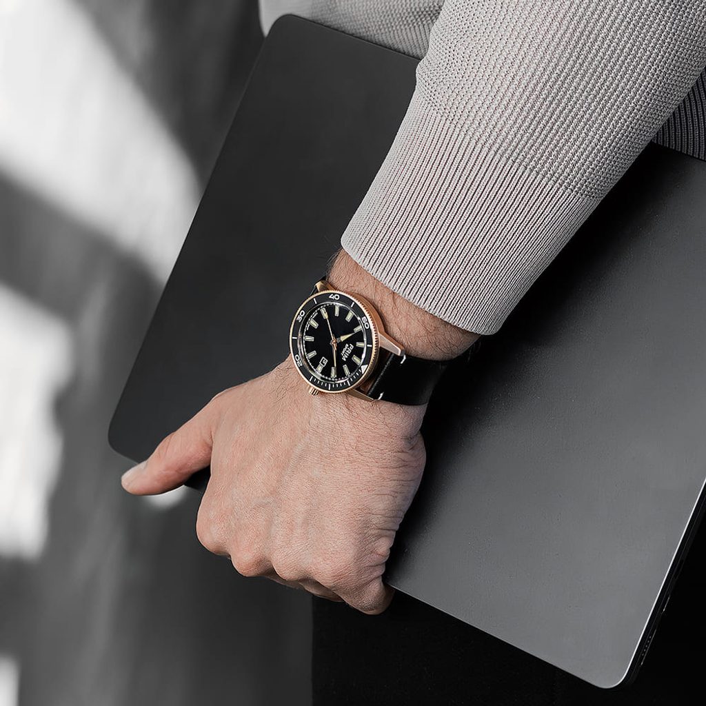 Legendárny "šport" v dizajne, ktorý vyhovuje každému. Puzdro z nehrdzavejúcej ocele, kvalitný kožený remienok starostlivo vybraný tak, aby ladil s ciferníkom a ručičkami. Ideálny model na každodenné nosenie, ktorý vás nesklame ani v tých najnáročnejších podmienkach. Vodotesnosť do 20 ATM.