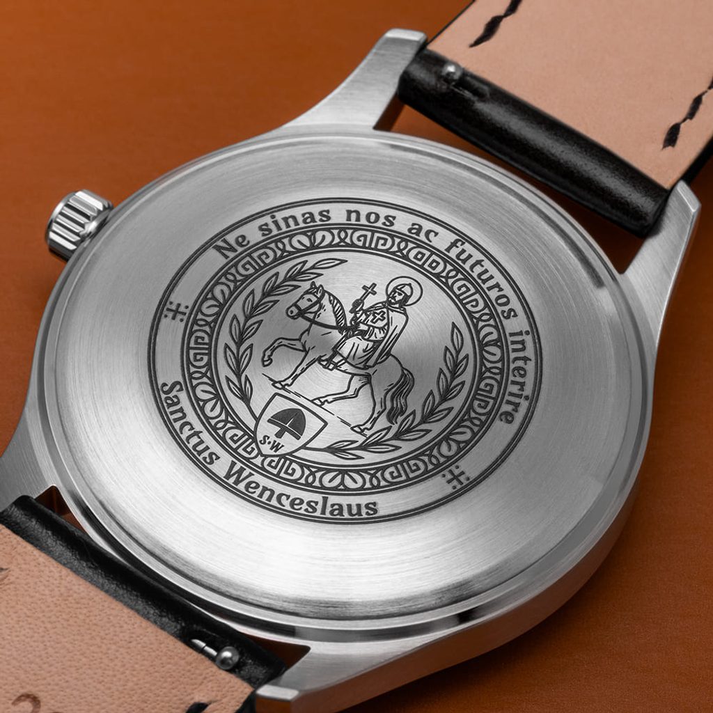 Český knieža a patrón českého národa, symbol českej štátnosti - svätý Václav. Panovník, ktorému záležalo na dobre národa viac ako na sebe. Je sprievodcom našich dejín i súčasnosti. Rímske číslice a motív prilby svätováclavskej zbroje sú detaily ciferníka, ktoré odkazujú na silný príbeh a posolstvo.