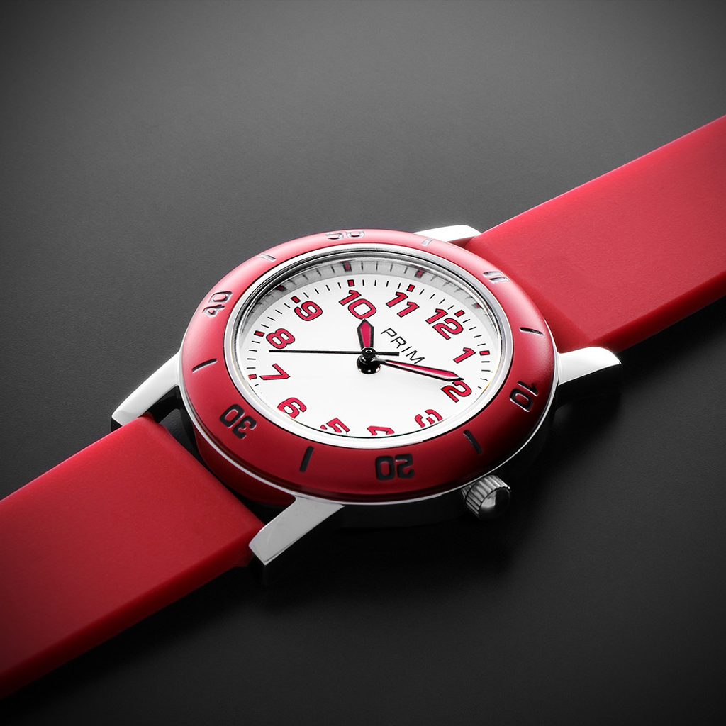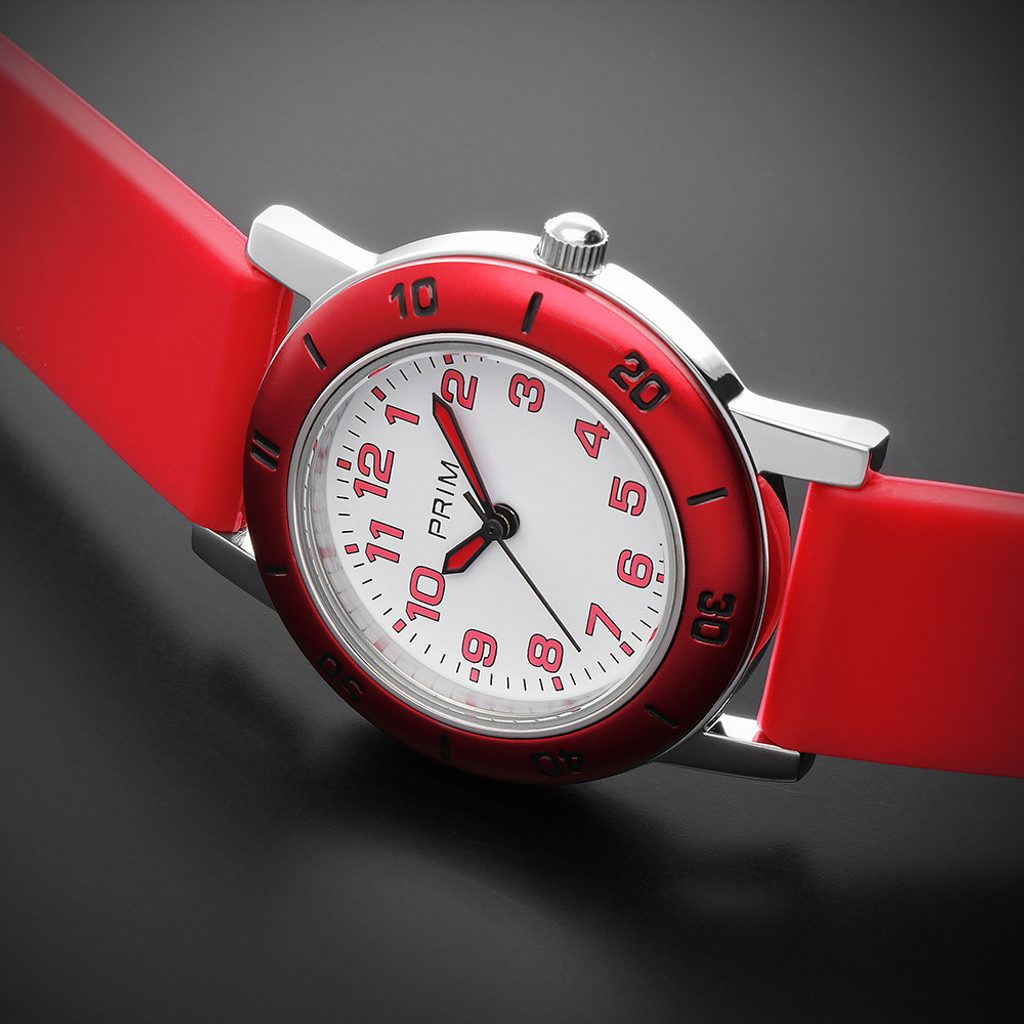 Inšpirovaný čitateľným a ľahko rozpoznateľným ciferníkom s arabskými číslicami vo farbách prstenca, grafický tím pridal farebné ručičky. Jasné farby boli vybrané aj pre každého školáka, aby si mohol vybrať a naučiť sa určovať čas na svojich prvých hodinkách PRIM. Praktický je aj minútový displej na pevnom kruhu, ktorý pomáha určiť čas. Hodinky sú kompletne vyrobené z nehrdzavejúcej ocele 316L a na ruke držia vďaka silikónovému remienku.