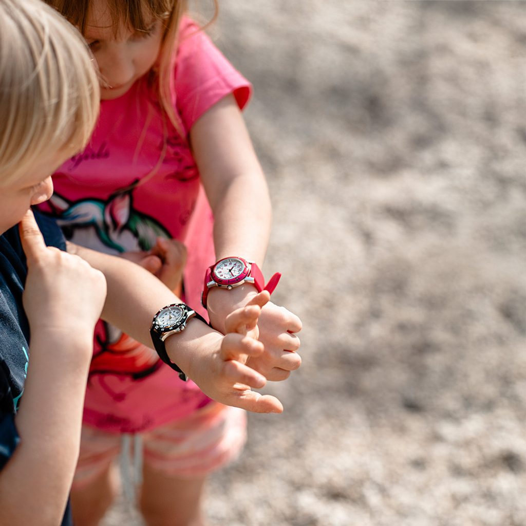 Vodotesnosť hodiniek je 100 m (10 ATM), takže vaše deti si hodinky nemusia dávať dole ani pred vstupom do bazéna.