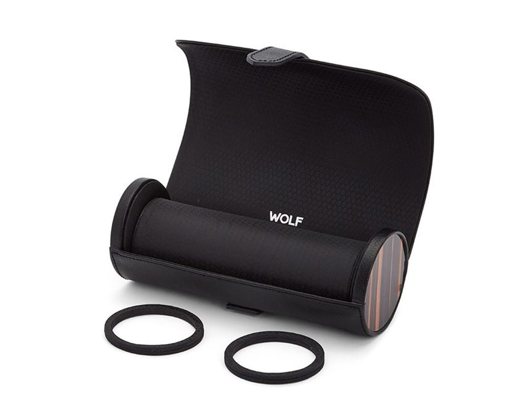 Inšpirované najlepšími britskými autami, Jaguar, Aston Martin, Bristol atď. Cestovné puzdro Wolf Roadster 477856 je ručne vyrobené z jemne štruktúrovanej vegánskej kože, diamantovej saténovej podšívky a patentovaných chráničov hodiniek, ktoré chránia vaše hodinky počas cestovania.