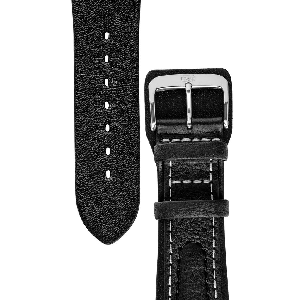 Čierny remienok Di-Modell Chronissimo s kontrastným bielym prešívaním z veľmi mäkkej hovädzej kože. Remienok je vhodný pre športovejšie hodinky.