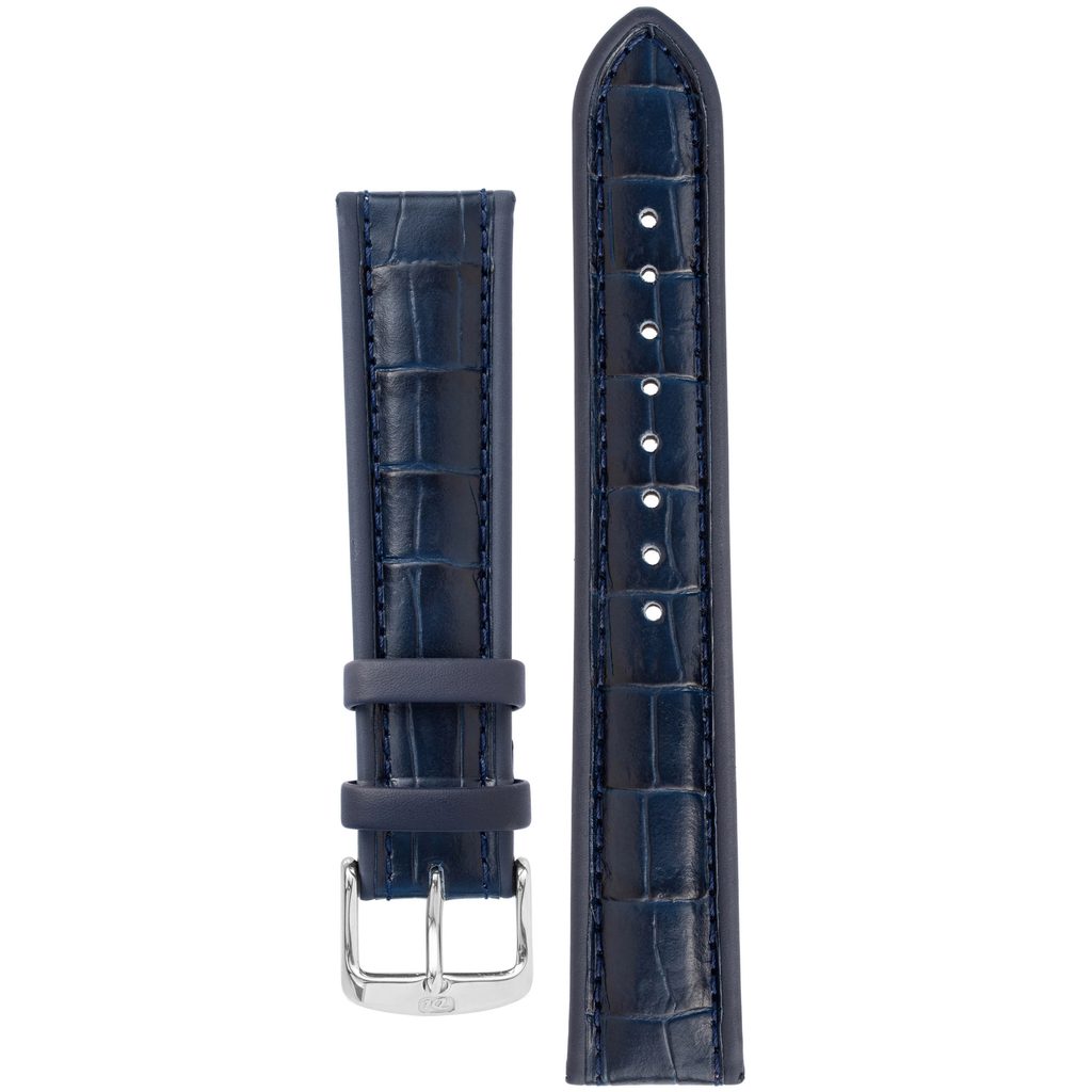 Tmavo modrý remienok Di-Modell Imperator s modrým prešitím - špičkový výrobok z teľacej kože so vzorom imitujúcim krokodíliu kožu.