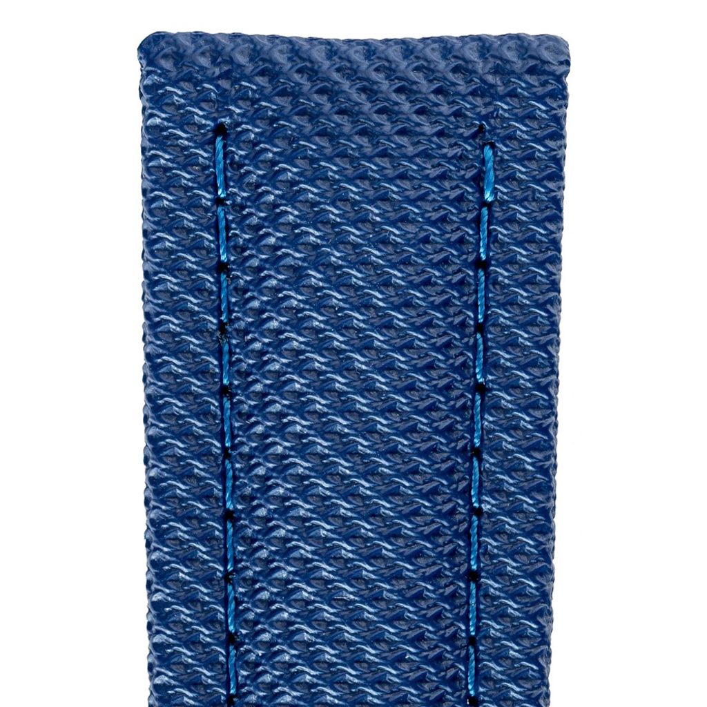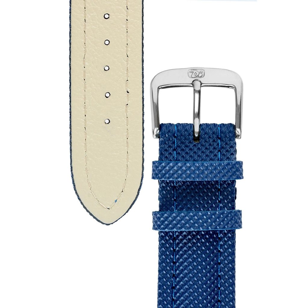 Modrý remienok Di-Modell Traveller. Robustná prešívaná konštrukcia vodeodolná do 100m. Vrchná strana potiahnutá polyuretánovou syntetickoku tkaninou.