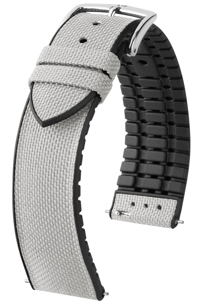 Zatiaľ čo vrchná časť remienka je vyrobená z vysokokvalitnej high-tech tkaniny, na spodnú časť bola použitá guma vo farbe Premium Caoutchouc. Práve táto kombinácia materiálov spĺňa všetky kritériá ideálneho športového náramku, ktorý je pohodlný, vysoko odolný voči poškodeniu a maximálne chránený vďaka funkcii Scratch-Resistant.