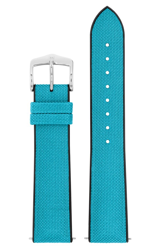 Zatiaľ čo vrchná časť remienka je vyrobená z vysokokvalitnej high-tech tkaniny, na spodnú časť bola použitá guma vo farbe Premium Caoutchouc. Práve táto kombinácia materiálov spĺňa všetky kritériá ideálneho športového náramku, ktorý je pohodlný, vysoko odolný voči poškodeniu a maximálne chránený vďaka funkcii Scratch-Resistant.