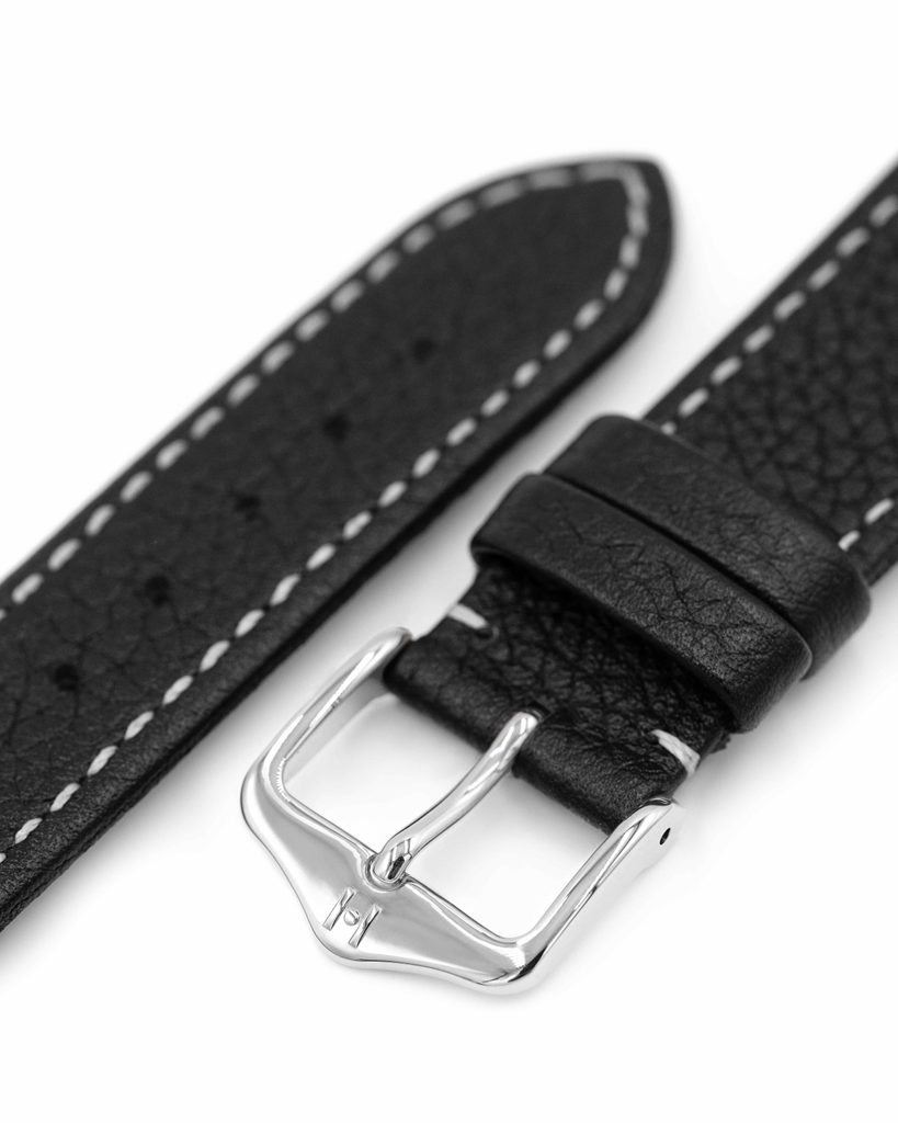 Kožený remienok je vyrobený z textúrovanej talianskej teľacej kože farbenej do hĺbky zrna. Výnimočná poddajnosť vďaka rozsiahlemu frézovaniu materiálu. A pretože maximálny komfort je pre remienok kľúčový, nechýba ani pohodlná podšívka SilkGlove. Neodmysliteľnou súčasťou je aj rýchloupínací systém na jednoduchšie zapínanie a výmenu remienka.