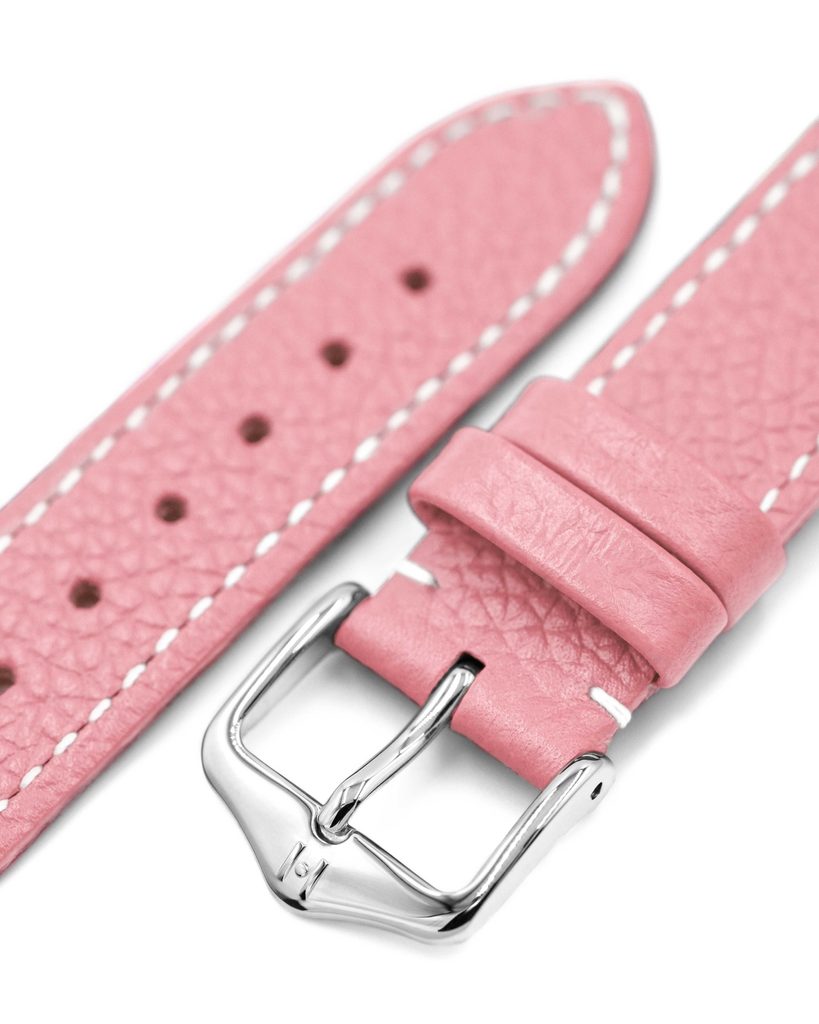 Kožený remienok je vyrobený z textúrovanej talianskej teľacej kože farbenej do hĺbky zrna. Výnimočná poddajnosť vďaka rozsiahlemu frézovaniu materiálu. A pretože maximálny komfort je pre remienok kľúčový, nechýba ani pohodlná podšívka SilkGlove. Neodmysliteľnou súčasťou je aj rýchloupínací systém na jednoduchšie zapínanie a výmenu remienka.