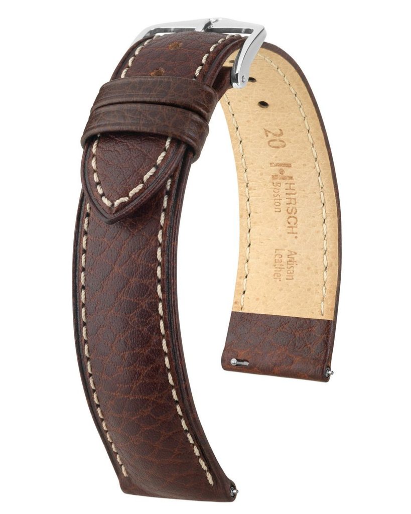 Remienok je vyrobený z teľacej kože z byvolieho mäsa najvyššej kvality a mäkkej podšívky SoftGlove. Vďaka premyslenému výberu materiálu sa príjemne nosí a prispôsobí sa každému zápästiu. Špecifický je aj samotný povrch, ktorý sa pýši drsnou štruktúrou. Je farbený poloanilínom a organicky čistený, čo mu dodáva neotrelý vzhľad.