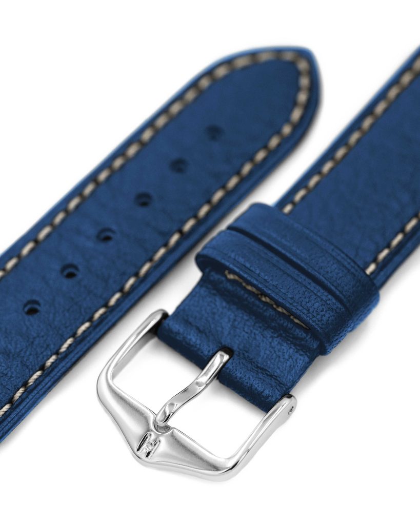 Remienok je vyrobený z teľacej kože z byvolieho mäsa najvyššej kvality a mäkkej podšívky SoftGlove. Vďaka premyslenému výberu materiálu sa príjemne nosí a prispôsobí sa každému zápästiu. Špecifický je aj samotný povrch, ktorý sa pýši drsnou štruktúrou. Je farbený poloanilínom a organicky čistený, čo mu dodáva neotrelý vzhľad.