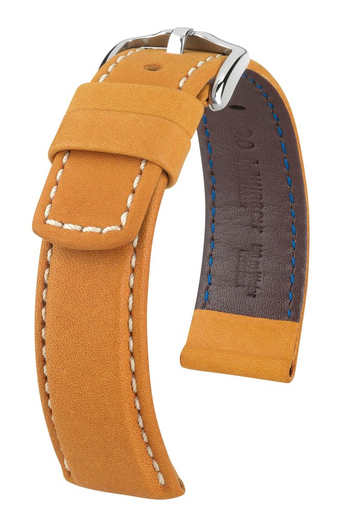 Remienok Mariner je vyrobený zo sedlovej a hlboko farbenej kože, ktorej povrch je špeciálne voskovaný. Vďaka tomu a dômyselne zvolenej podšívke DivingGlove je remienok vodotesný až do 100 m. Okrem vysokej kvality popruh poteší aj maximálnym komfortom.
