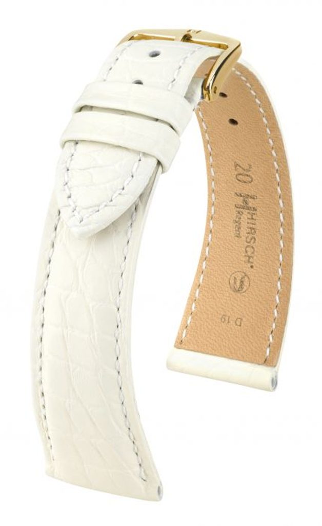 Prémiový remienok z kolekcie Regent si získa srdcia všetkých, ktorí si chcú dopriať niečo výnimočné. Jeho dizajn ide ruka v ruke s novými trendmi. Originálny vzor aligátora s autentickou textúrou je neoddeliteľnou súčasťou dizajnu, pričom netreba zabúdať ani na dvojfarebné tónovanie, hodvábny lesk a prešívanie tón v tóne. Na zapínaní je tiež ručne šitý bartacký šev a bezpečnostný steh priamo na pútku. Celkový vzhľad umocňuje elegantná spona.