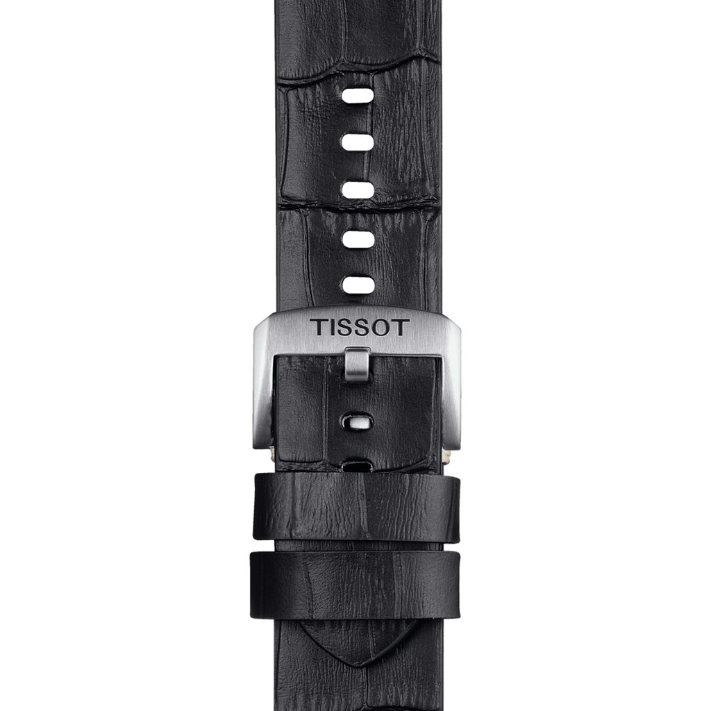 Originálny čierny remienok Tissot T852.046.775 je vyrobený z hovädzej kože so vzorom aligátora a je vybavený ľahko použiteľným systémom rýchleho zapínania a klasickou tŕňovou sponou z nehrdzavejúcej ocele.