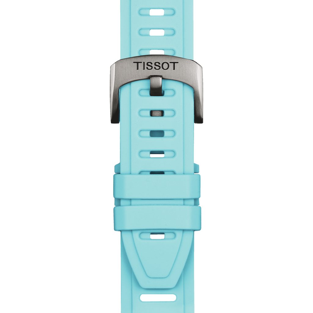 Originálny modrý remienok Tissot T852.049.329 je vyrobený z odolného a pružného silikónu, má ľahko použiteľný rýchloupínací systém a klasickú titánovú tŕňovú sponu.