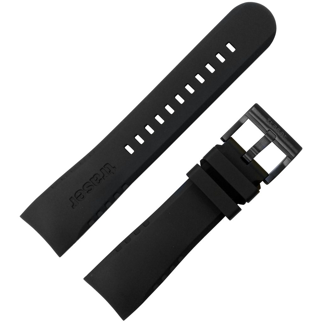 Originálny gumový remienok Traser s PVD povrchovou úpravou v čiernej farbe so šírkou 24 mm.