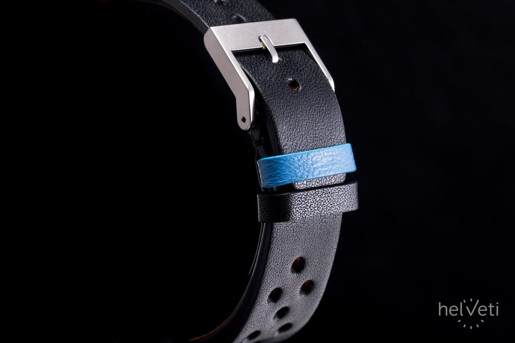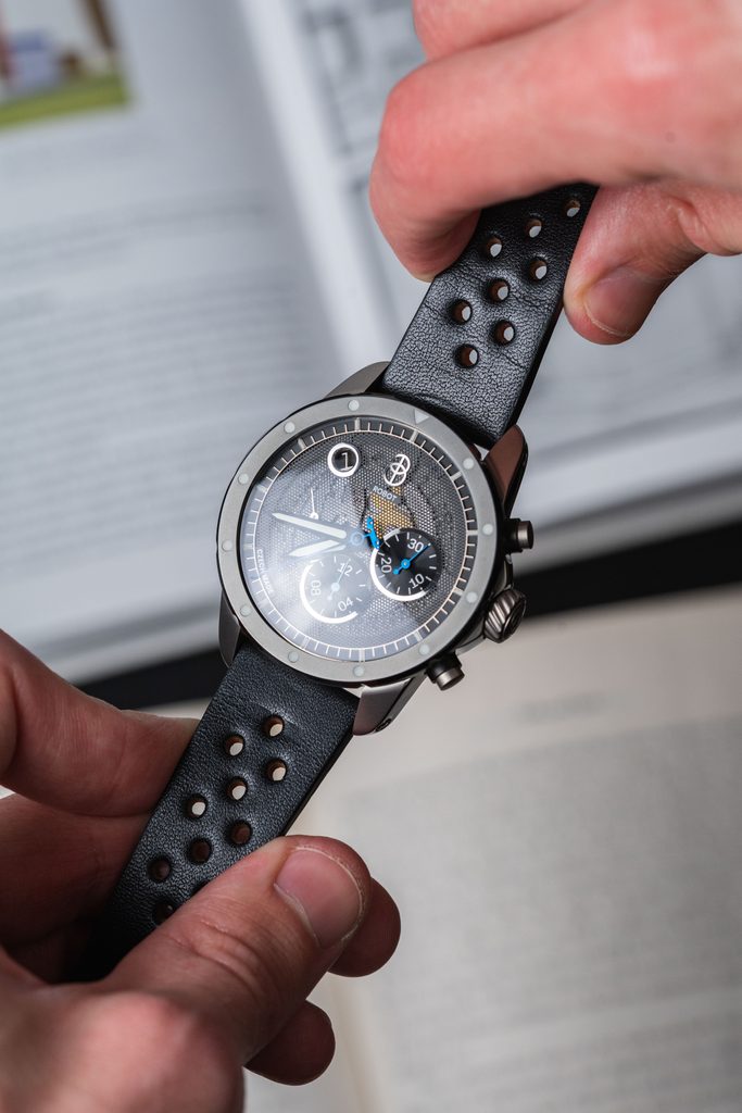 Grafika ciferníka a tvar ručičiek pripomínajú prístroje na prístrojovej doske, ozubené kolesá prevodovky ožívajú v podobe korunky a rotor automatického naťahovania odkazuje na geometriu disku kolesa. Okrem perforácie ciferníka stojí za zmienku reliéfny subciferník vyrobený galvanoplastikou, frézované, ručne leštené a leštené ručičky alebo nezvyčajný skeletovaný dátumový veniec.