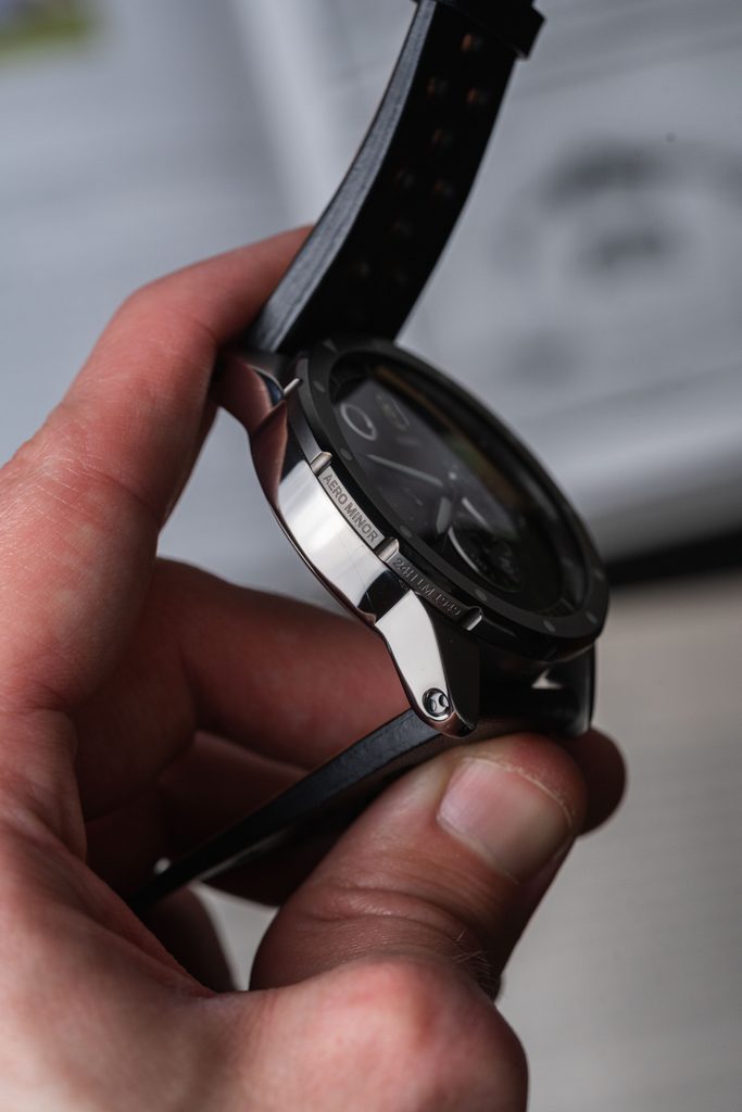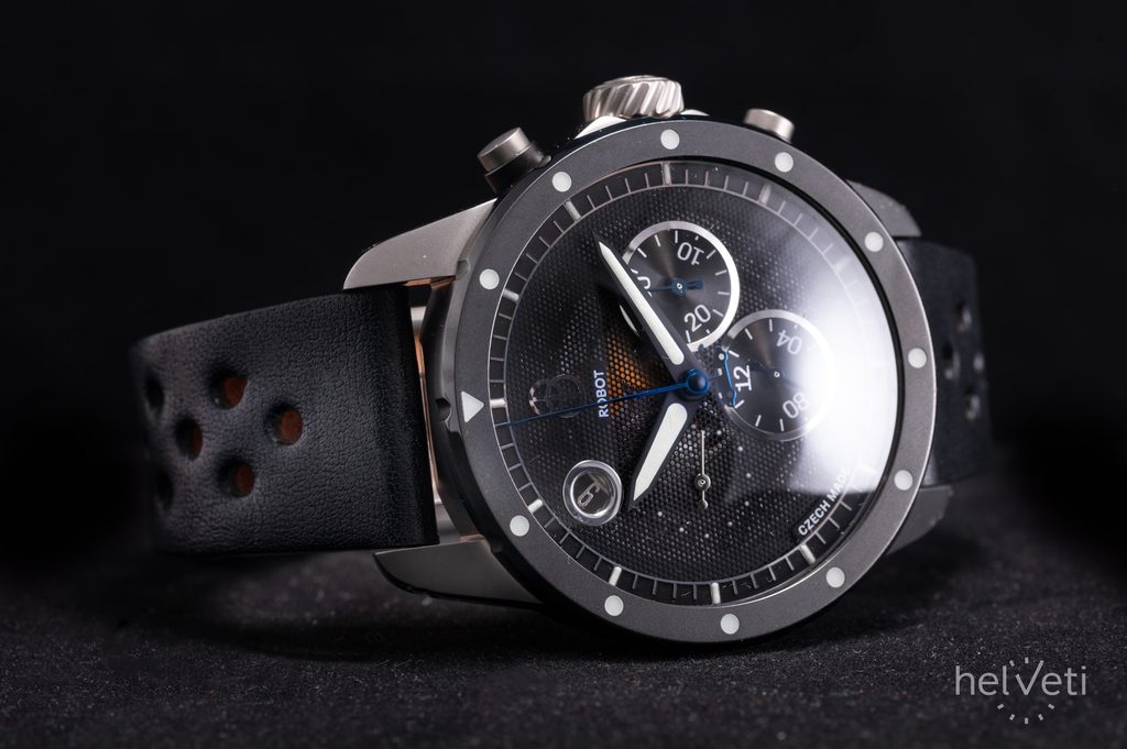 Robot Minor Monaco Black v ľahkom a odolnom titánovom puzdre zaujme originálnym pretekárskym dizajnom, ktorému dominuje ciferník s 3 462 miniatúrnymi perforáciami, ktoré umožňujú nahliadnuť do srdca automatického hodinkového strojčeka La Joux-Perret.