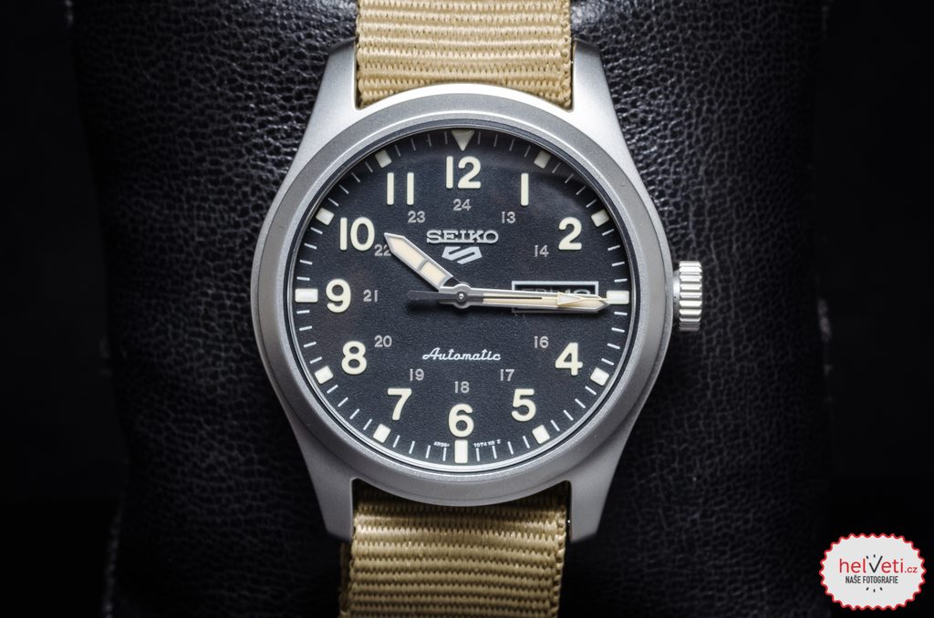 Hodinky Seiko SRPG35K1 s vynikajúcou prehľadnosťou vychádzajú z obľúbenej série Seiko 5 Sports a zachovávajú si 4 z 5 detailov, ktoré sú pre túto sériu typické. Mechanický strojček s automatickým naťahovaním, vodotesnosťou, nárazuvzdorným puzdrom a zobrazením dátumu a dňa v týždni v jednom okienku oceníte pri každodennom nosení aj pri športe. Hoci korunka nie je typicky skrytá na úrovni 4 hodín, jej plochosť znamená, že nie je rušivá a pohodlne sa s ňou manipuluje. Oceľové puzdro hodiniek dopĺňa textilný remienok nato pieskovej farby.