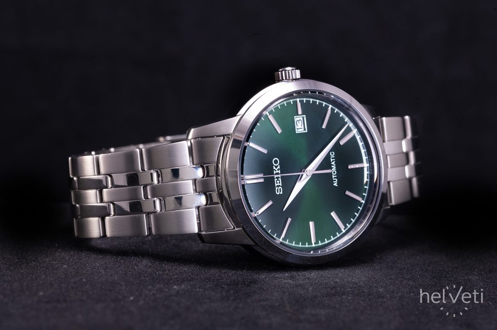 Oceľové puzdro hodiniek Seiko SRPH89K1 dopĺňa náramok z piatich článkov z rovnakého materiálu. Zelený ciferník s paličkovými indexmi na hodinových pozíciách a minútovou stupnicou po obvode je chránený tvrdeným minerálnym sklom Hardlex. Na zachovanie čistoty ciferníka a klasického vzhľadu sú použité elegantné dauphinské ručičky a hodinky sú vybavené funkciou iba dátumu na pozícii tretej hodiny. Srdcom hodiniek je mechanický samonáťahový strojček 4R35 s rezervou chodu až 41 hodín.