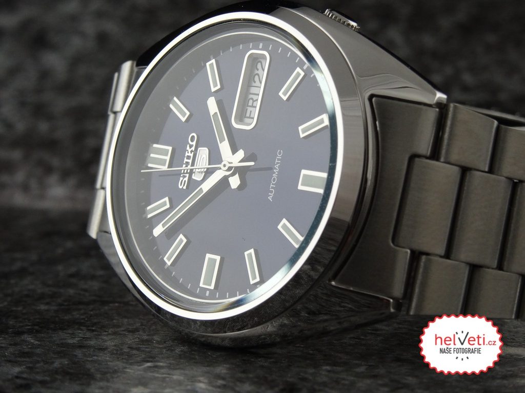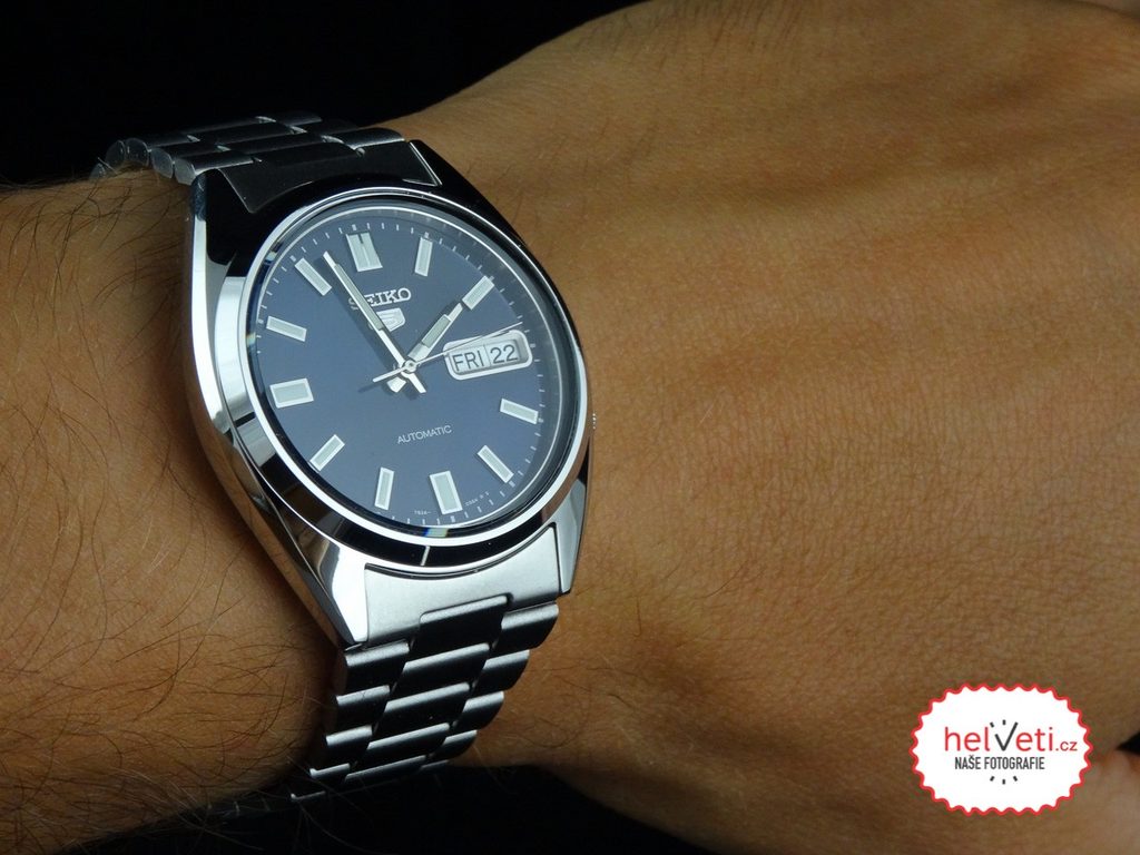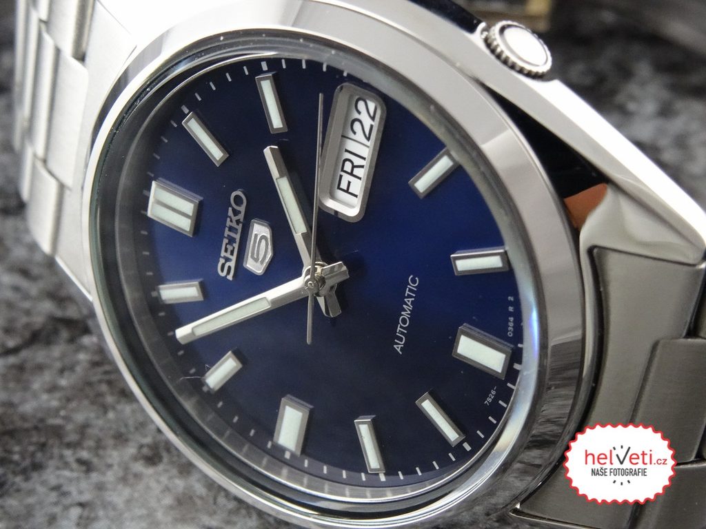Model Seiko SNXS77 patrí do legendárneho modelového radu Seiko 5. Majiteľov zaujme výrazný, prehľadne riešený modrý ciferník so slnečnými lúčmi, výraznými ručičkami a tvarovanými indexmi alebo korunka na štvrtej hodinovej pozícii.