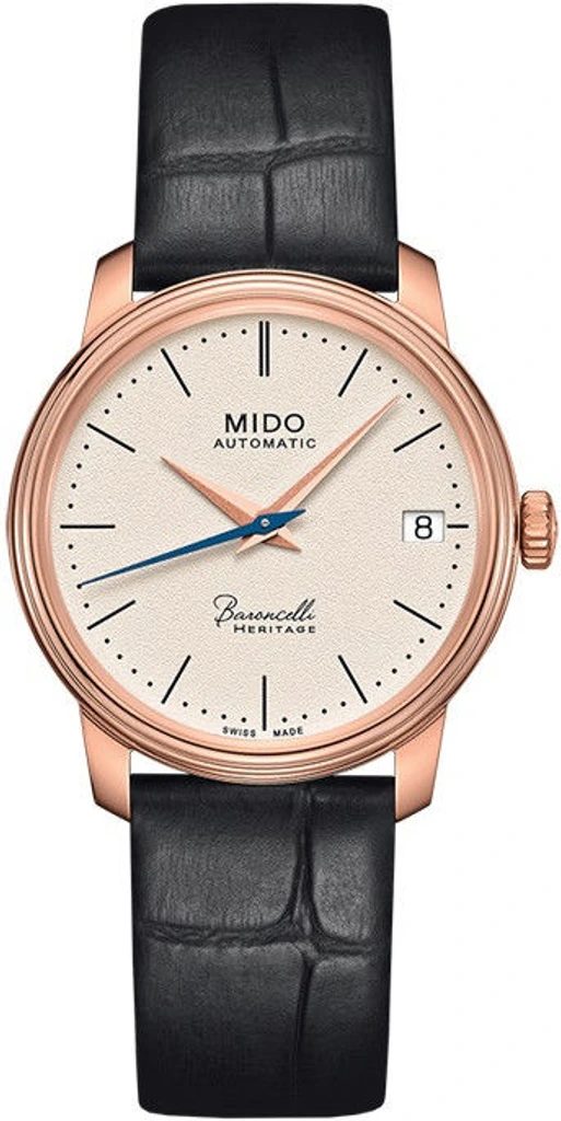 Hodinky Mido M027.407.36.260.00 majú puzdro z nehrdzavejúcej ocele 316L s povrchovou úpravou ružovým zlatom PVD, ktoré vhodne dopĺňa kožený remienok. V puzdre spoľahlivo tiká švajčiarsky mechanický strojček Mido Caliber 1192 (na báze ETA 2892-A2) s automatickým naťahovaním. Pracuje s frekvenciou 28800 polfrekvencií za hodinu, má 21 drahokamov a rezervu chodu 42 hodín. Činnosť tohto stroja možno sledovať cez priehľadný volič. Na pozícii 3 hodín sa nachádza praktický ukazovateľ dátumu.