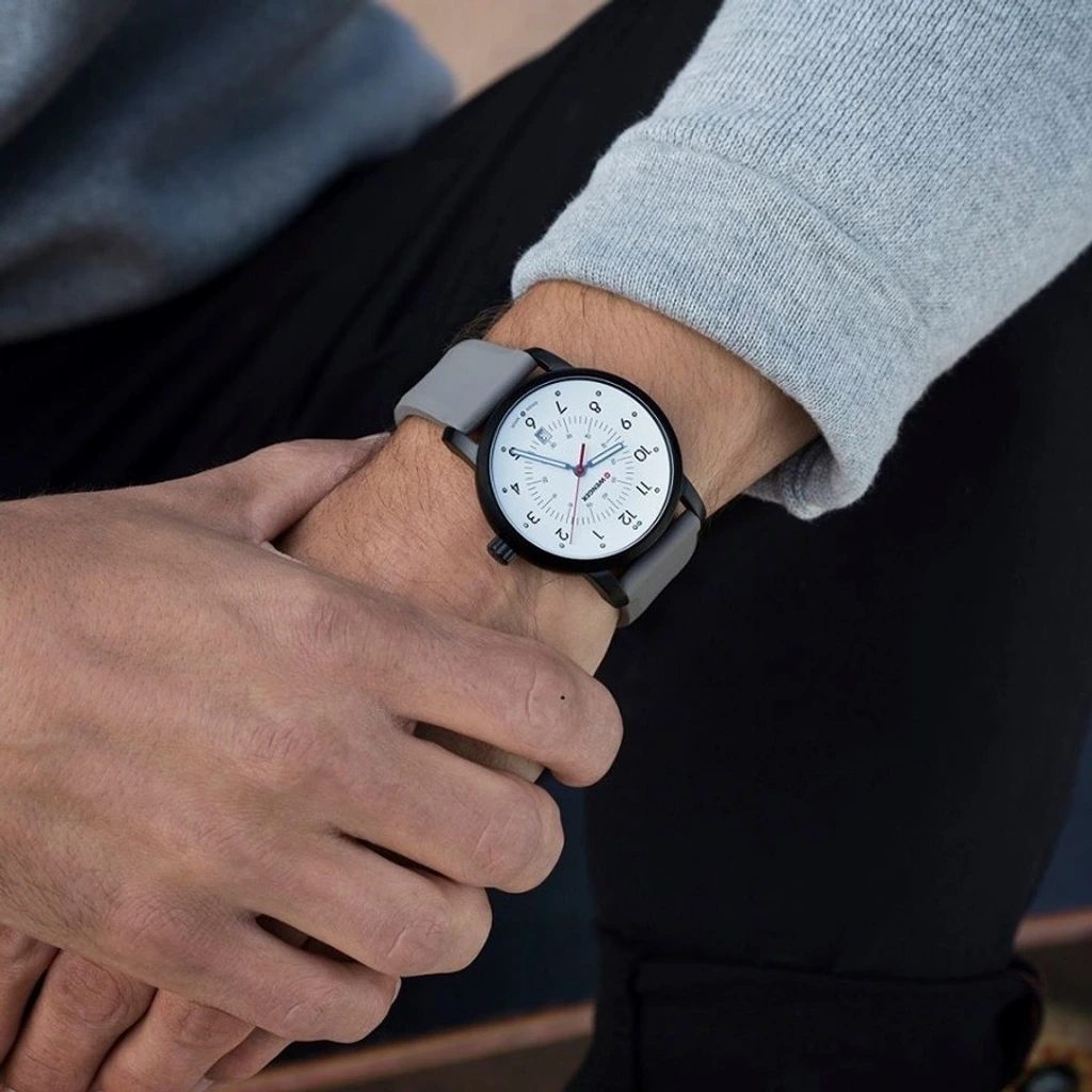 Hodinky držia na zápästí vďaka gumovému remienku. Vodotesnosť tohto modelu je 10 ATM - je vhodný na bežné plávanie v sladkej aj slanej vode.