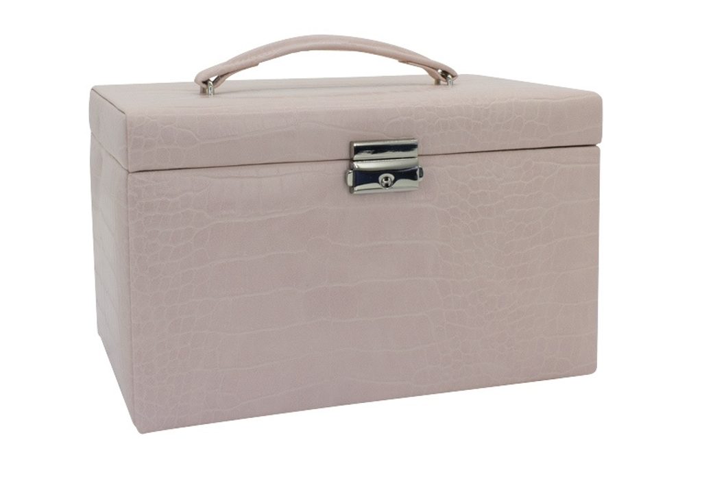 Ružová šperkovnica Friedrich Lederwaren Caiman 20135-4 je potiahnutá kožou. Obsahuje 4 poschodia na uloženie rôznych druhov šperkov, zrkadlo vo veku šperkovnice.
