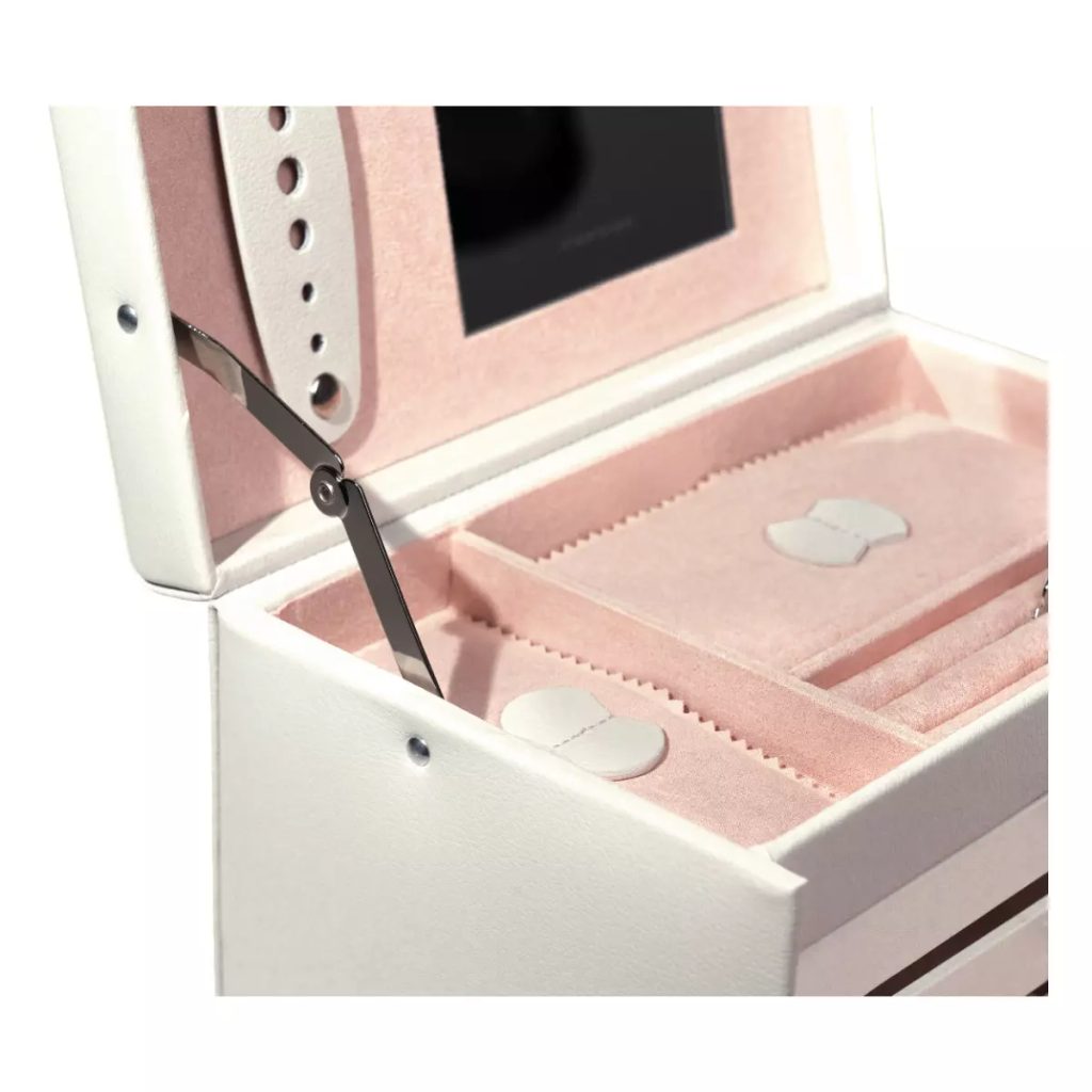 Šperkovnica Friedrich Lederwaren Classico Rosé 23238-10 v krémovej farbe je vyrobená zo syntetického materiálu. Obsahuje niekoľko úrovní na uloženie rôznych druhov šperkov, vo veku šperkovnice sa nachádza zrkadlo a pásik na umiestnenie náušníc.