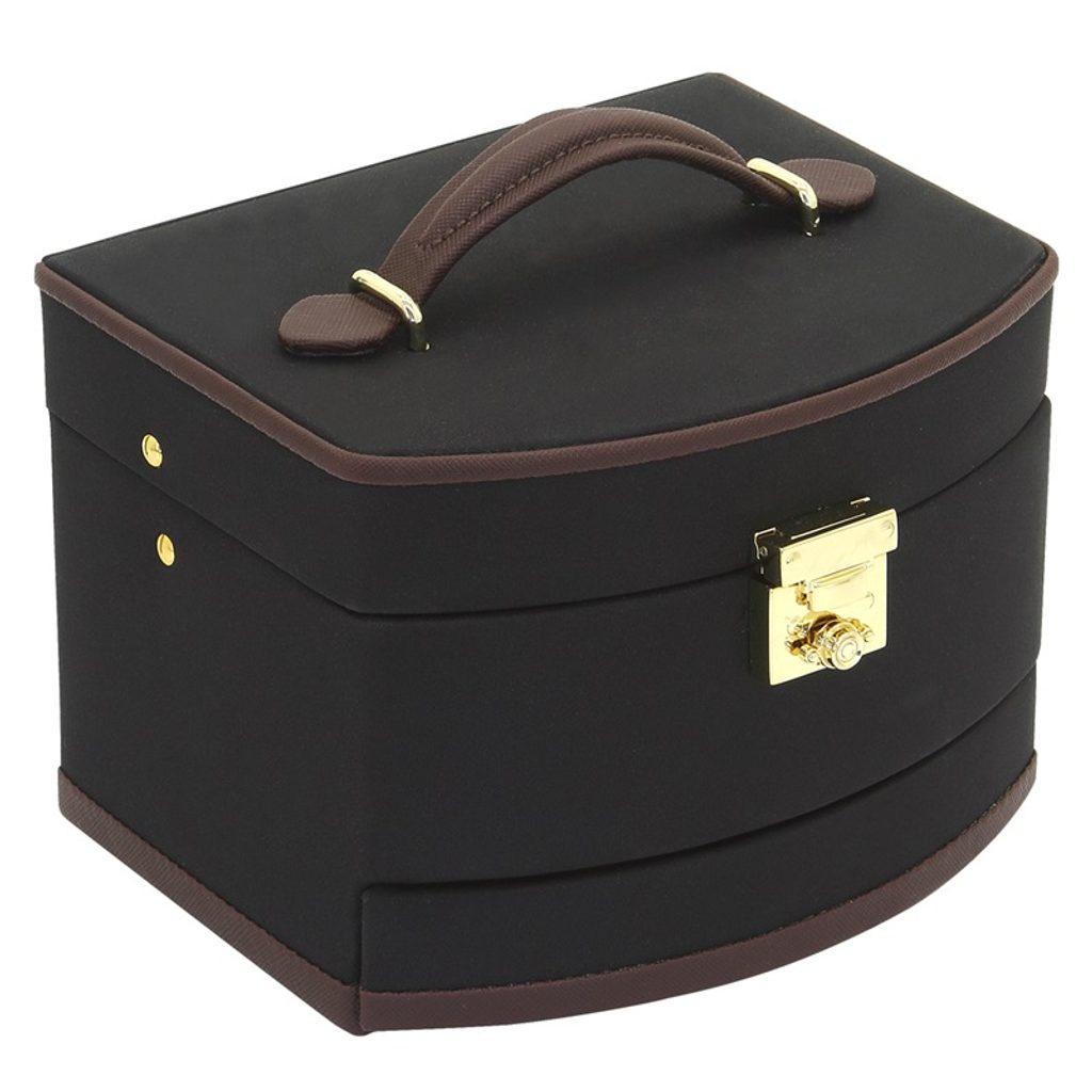 Čierna šperkovnica Friedrich Lederwaren Copenhagen 23331-2 je vyrobená z polyesteru. Vnútorný priestor je vyrobený z hnedej mikrofázy.
