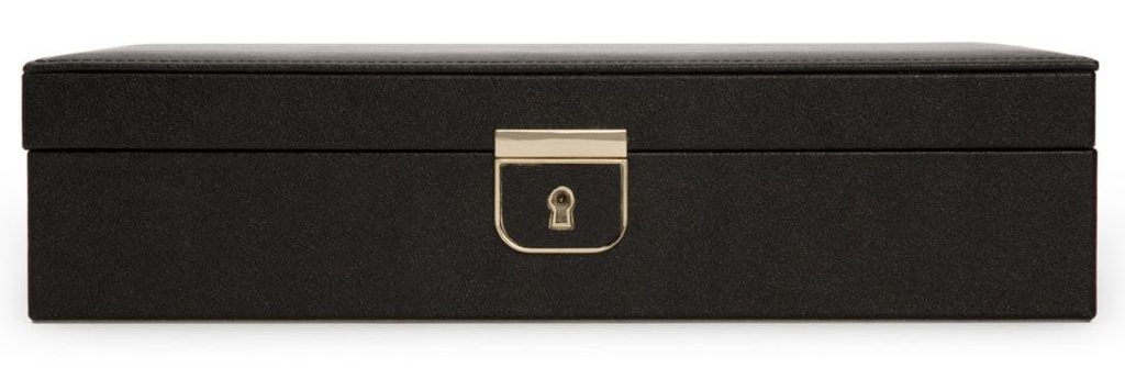 Čierna šperkovnica Wolf Palermo 213202 s béžovým interiérom je vyrobená z prvotriednej kože s kovovými doplnkami zlatej farby. Očarujúca a sofistikovaná šperkovnica Palermo je skvelá na štýlové vystavenie a uloženie vašich šperkov.