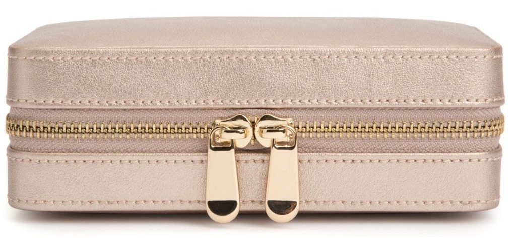 Cestovná šperkovnica Wolf Palermo 213616 rose gold so sivým interiérom je vyrobená z prvotriednej kože s kovovými doplnkami zlatej farby. Očarujúca a sofistikovaná šperkovnica Palermo je skvelá na bezpečné uloženie vašich šperkov na cestách.