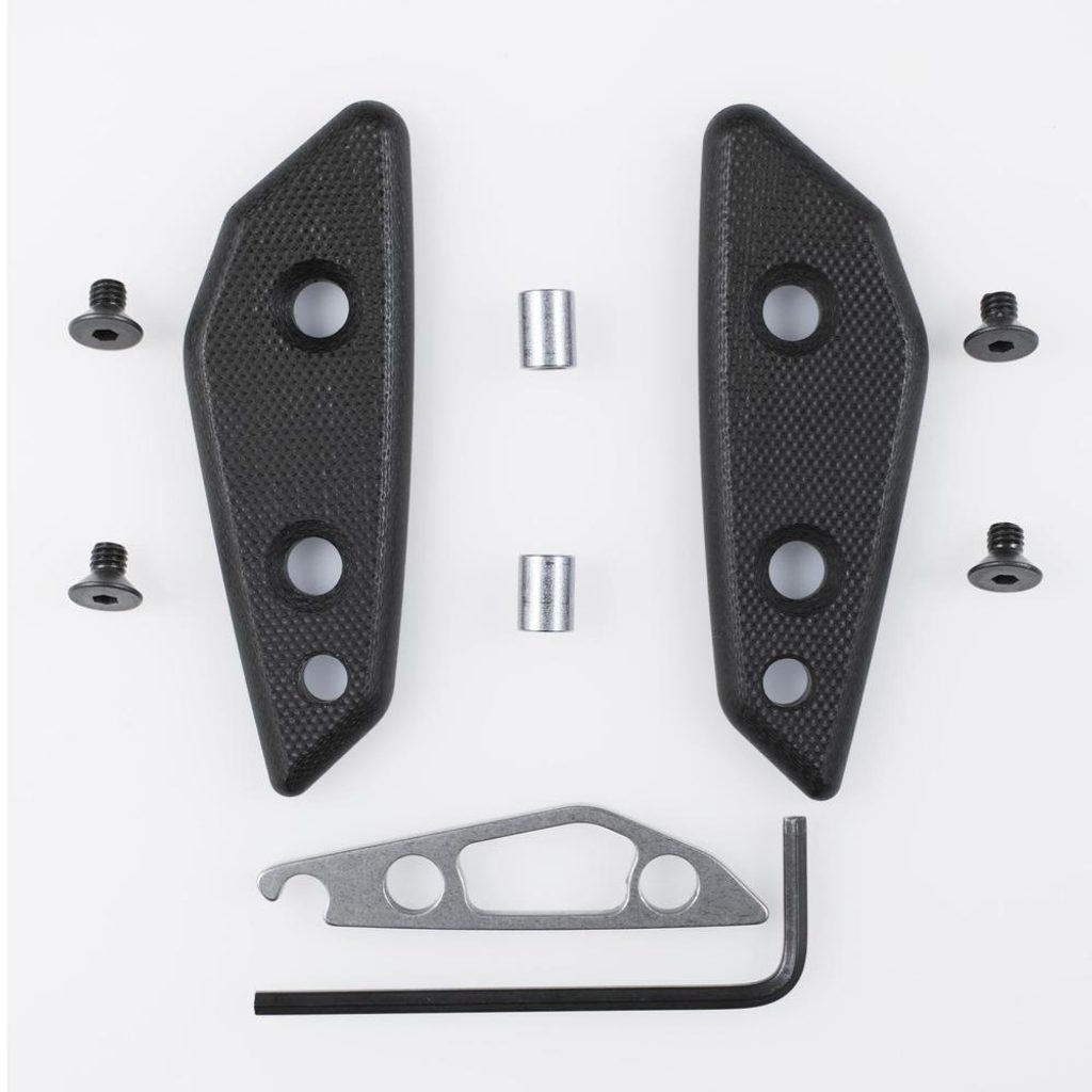 Súprava čepelí je určená na montáž na rukoväť noža LIST. Obojstranné pošvy z materiálu G10 so stabilizačnou kovovou vložkou možno k nožu ľahko pripevniť pomocou závitových objímok.