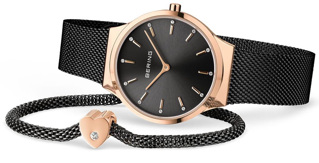 Hodinky sa dodávajú s veľmi zaujímavým pleteným náramkom Bering z nehrdzavejúcej ocele rovnakej farby ako náramok hodiniek, zdobeným korálkou v tvare srdca v ružovom zlate. Korálik je zladený s puzdrom hodiniek.